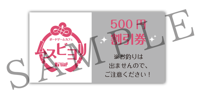 東京上野でタルオシルゲームズが運営する、ボードゲームカフェ「ムスビヨリ」の500円割引チケットです。