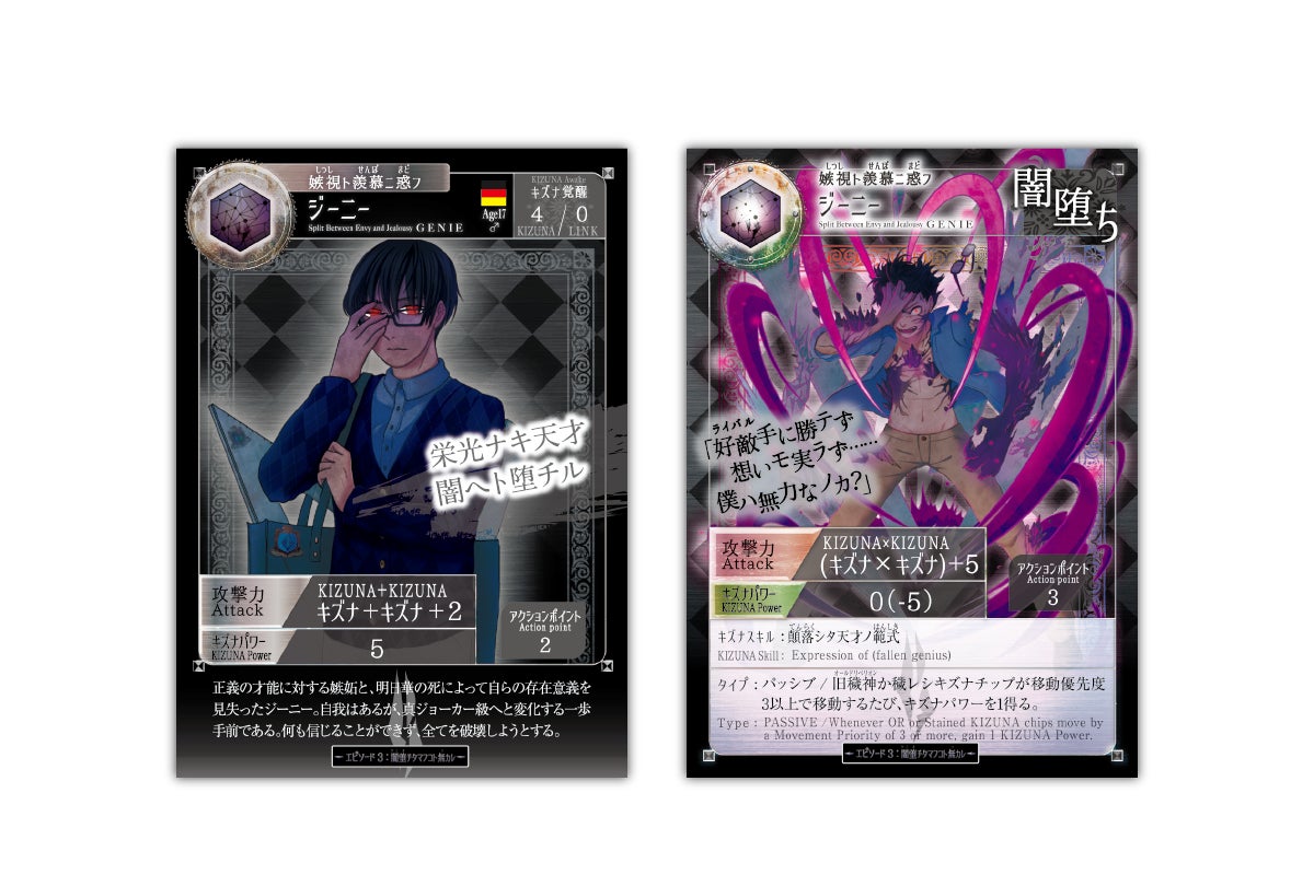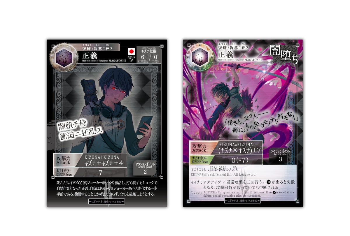 また、条件を満たしてカードを裏返す「覚醒」アクションが「闇堕ち」へと置き換えられており、闇堕ちした瞬間にキズナチップ置き場にあるキズナチップが全て失われ、キズナを場に出すことができなくなります。
