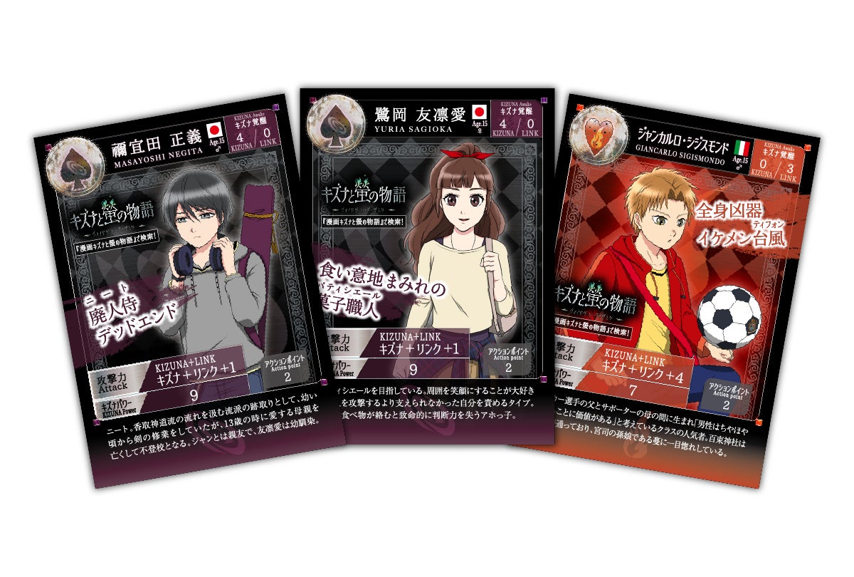 「漫画版キズナと螢の物語」の作画を担当されている、シライウキさんの描き下ろしキャラクターカードです。もちろん実際のゲームに使用できます。