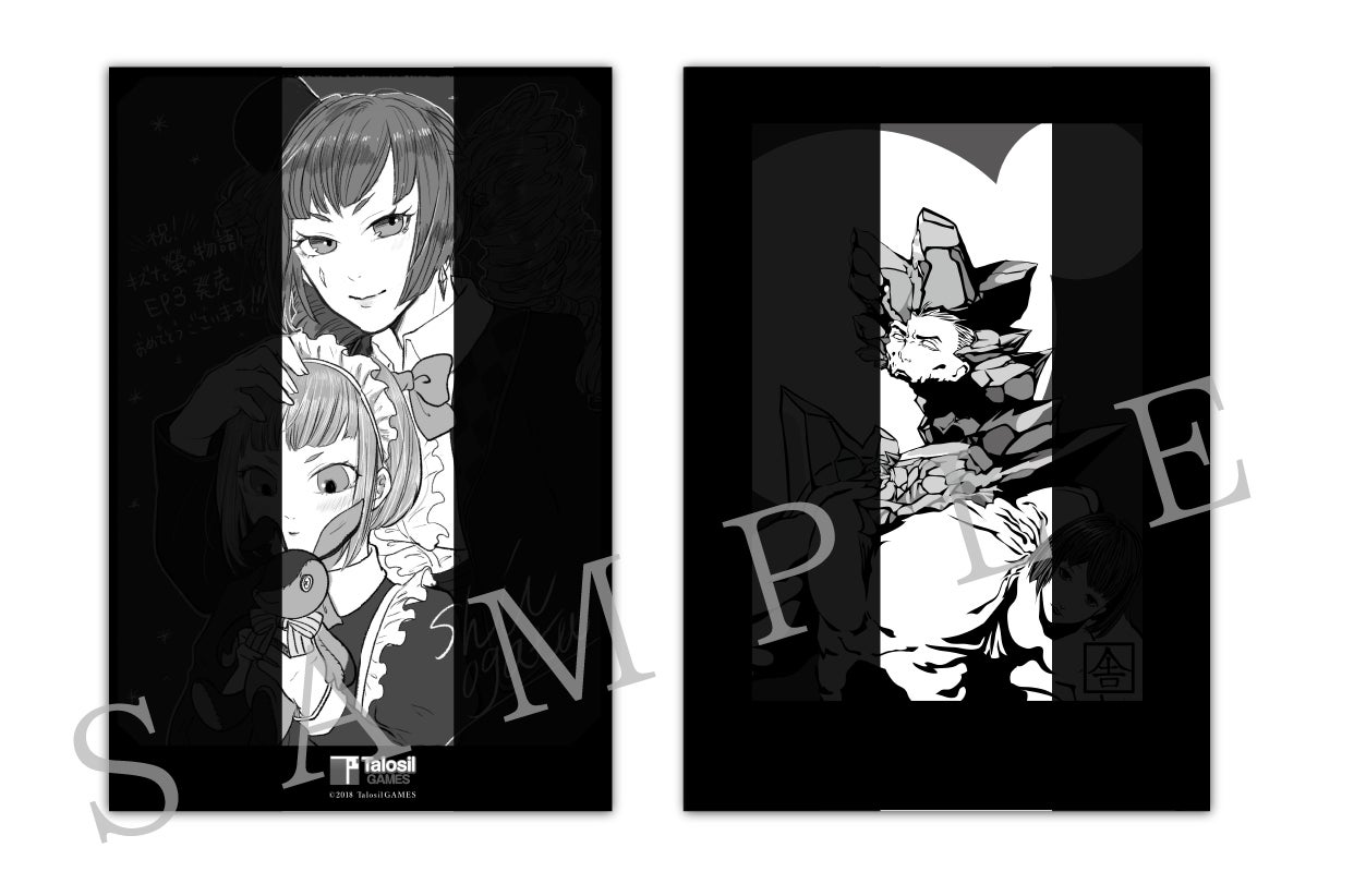 キャラクターデザインを担当している「緒方沁」さん、旧穢神デザインを担当している「小西輝洋」さんが、今回のために描き下ろしてくれた特製ポストカードを2枚セットでお届けします!