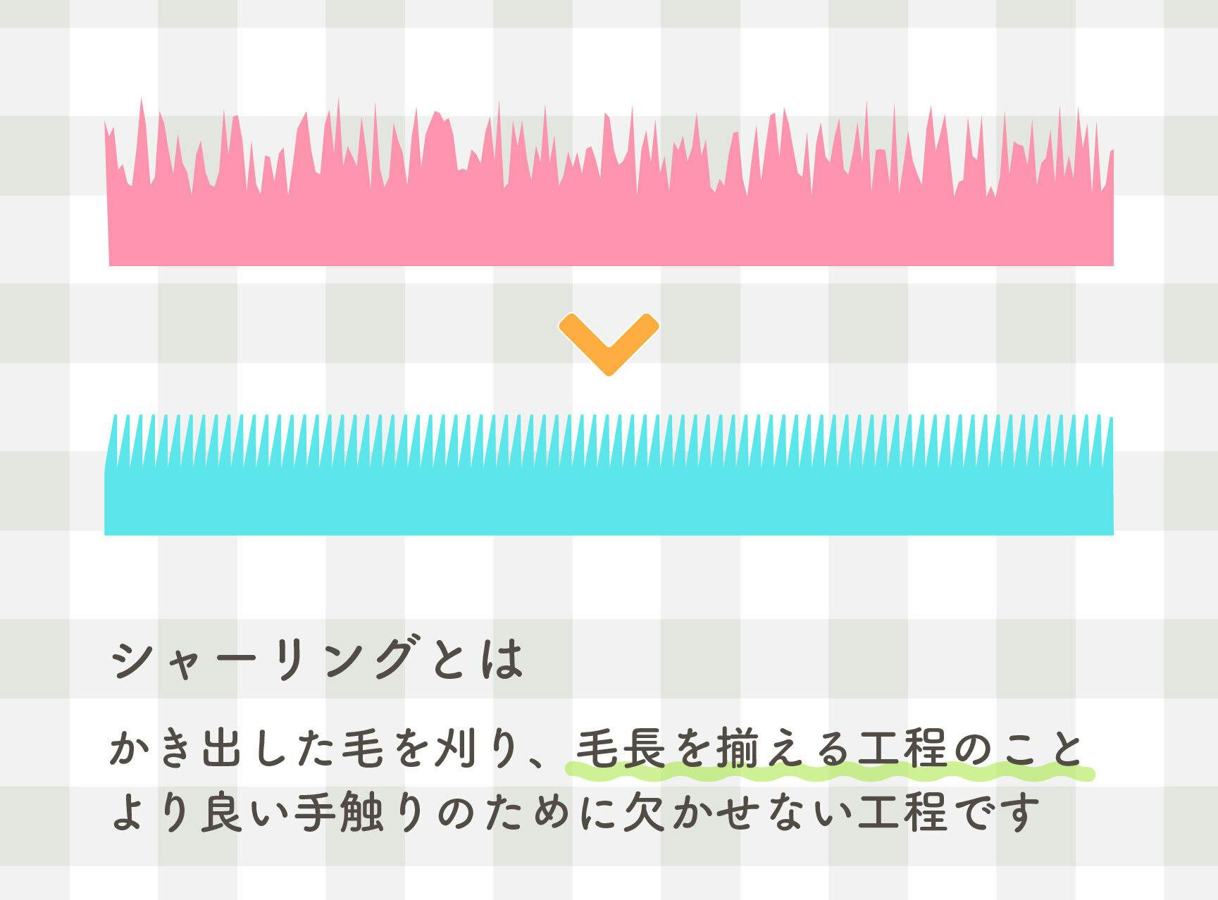 この毛を立ち上げるという工程がないと、シャーリングをしても綺麗に毛長が揃いません。