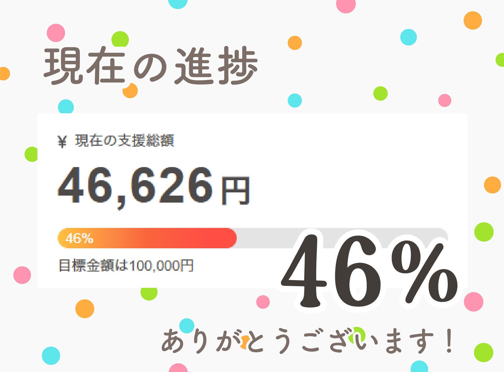 現在時点でのご支援の進捗状況をお知らせします!