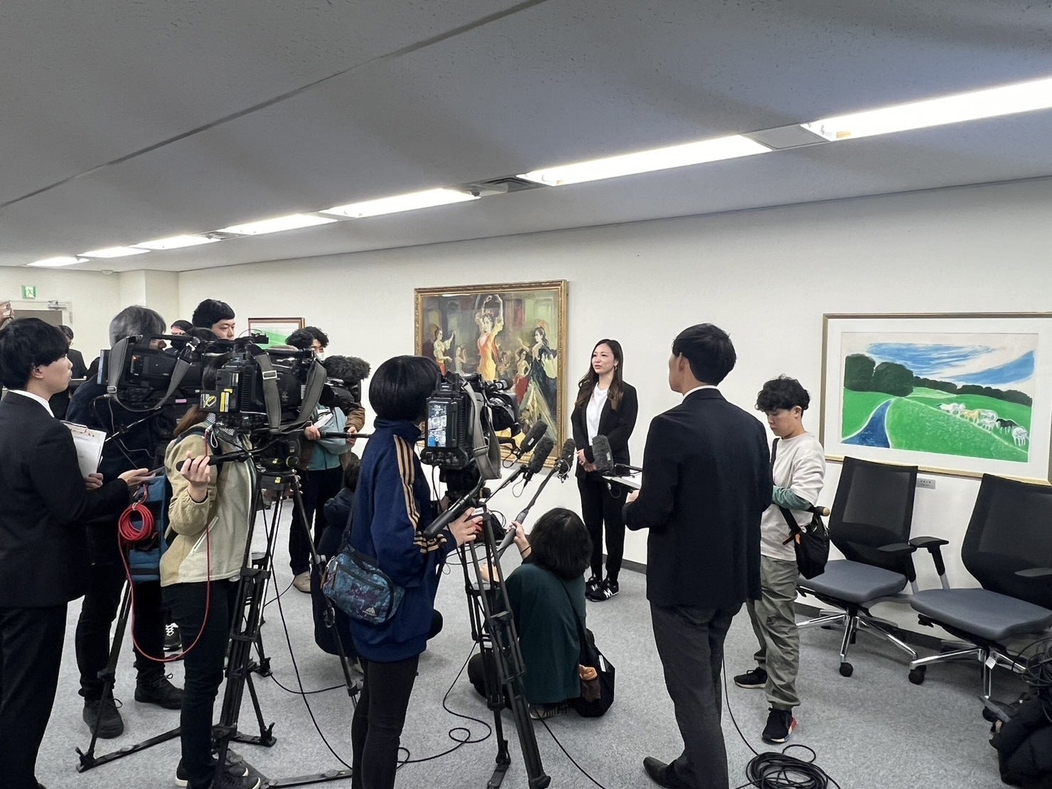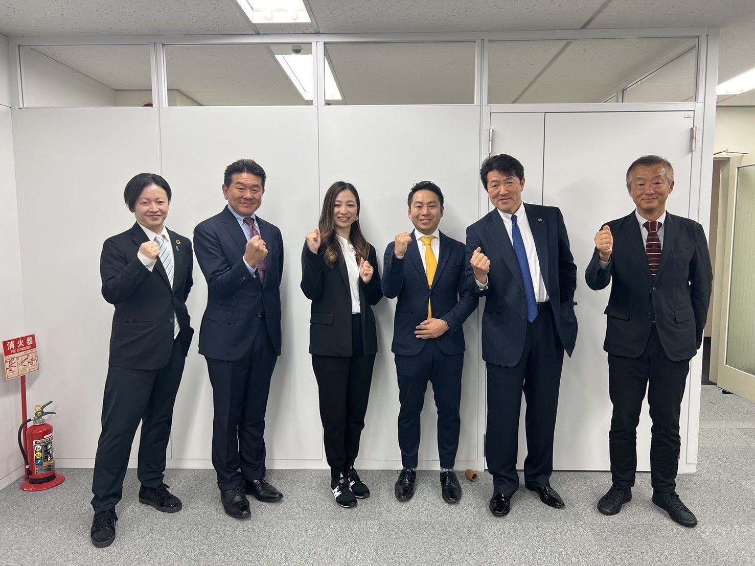 決起会の様子、たくさんの報道陣にもお集まりいただきました