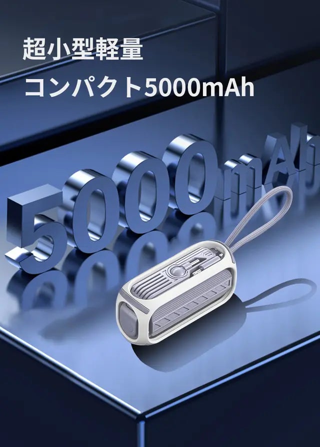 圧倒的な超小型・軽量、5000mAh容量【2 in1超小型 モバイルバッテリー】