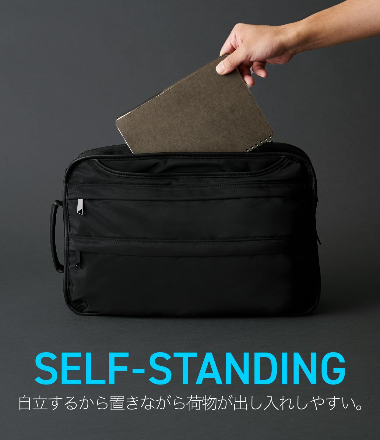 型崩れしにくく、自立します。その為、社外の商談で床にバックを置くことになっても見栄えが良いです。