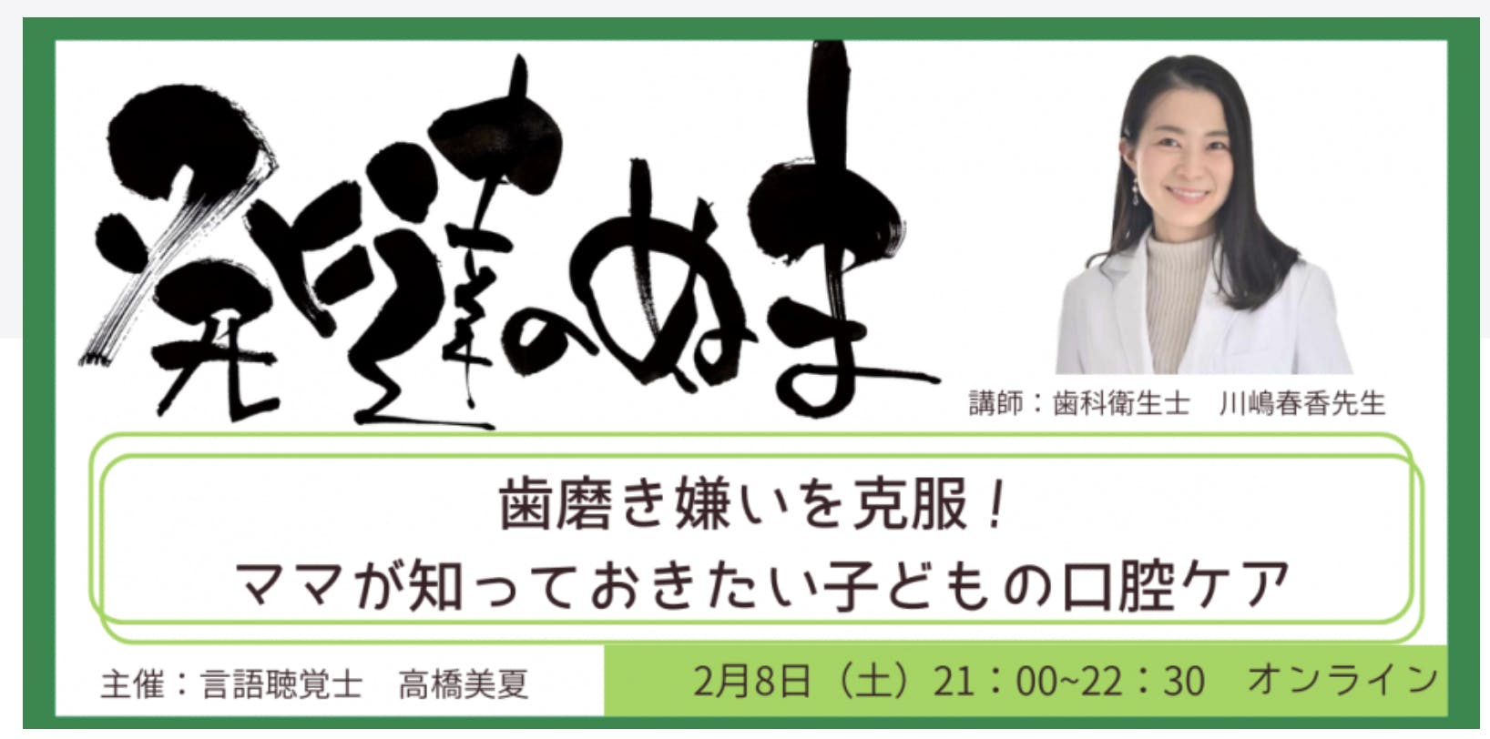 小児専門言語聴覚士の高橋美夏さんが主催される『発達のぬま』に登壇致します。