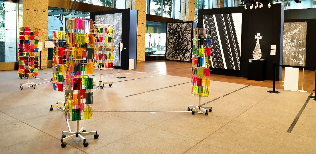 日本のアート市場が拡大しない理由のひとつに「アートは敷居が高い」と思われていることが挙げられます。このような状況を打開しようと、東京・大手町にある三井住友銀行東館1階という、多くの人が行き交うロビー空間を会場に選びました。ガラス張りのためビルの外から中の様子が見やすく、どなたでも気軽に立ち寄れる場所です。若手に限らず、海外で活躍する著名な作家も含め、12人のアーティストの作品を展示します。初心者の方にも興味を持っていただけるような、わかりやすい作品をセレクトしました。