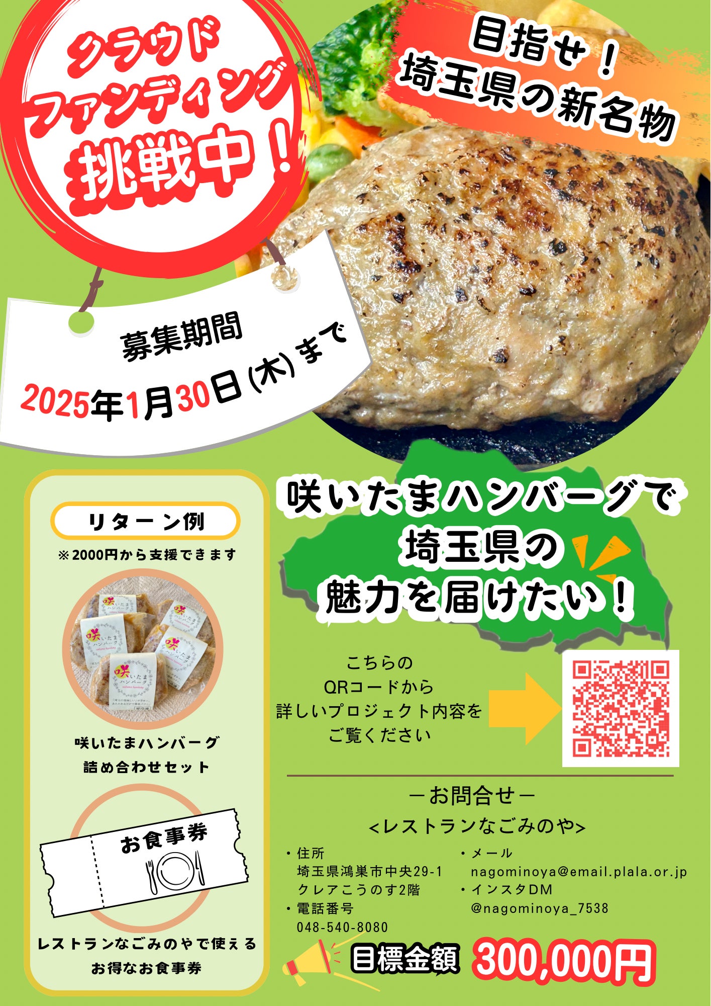 埼玉県の新名物 「咲いたまハンバーグ」を全国に広めるため、クラウドファンディングに挑戦中です!ご支援いただけると嬉しいです!