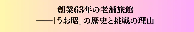 この挑戦は、「うお昭」という宿を100年先の未来に繋げるだけでなく、