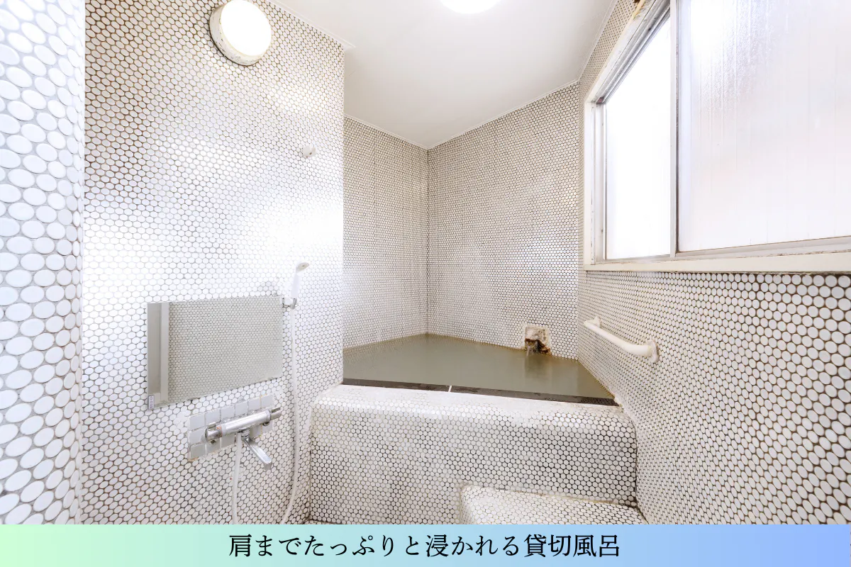 肩までたっぷりと浸かれる深めの湯舟は、