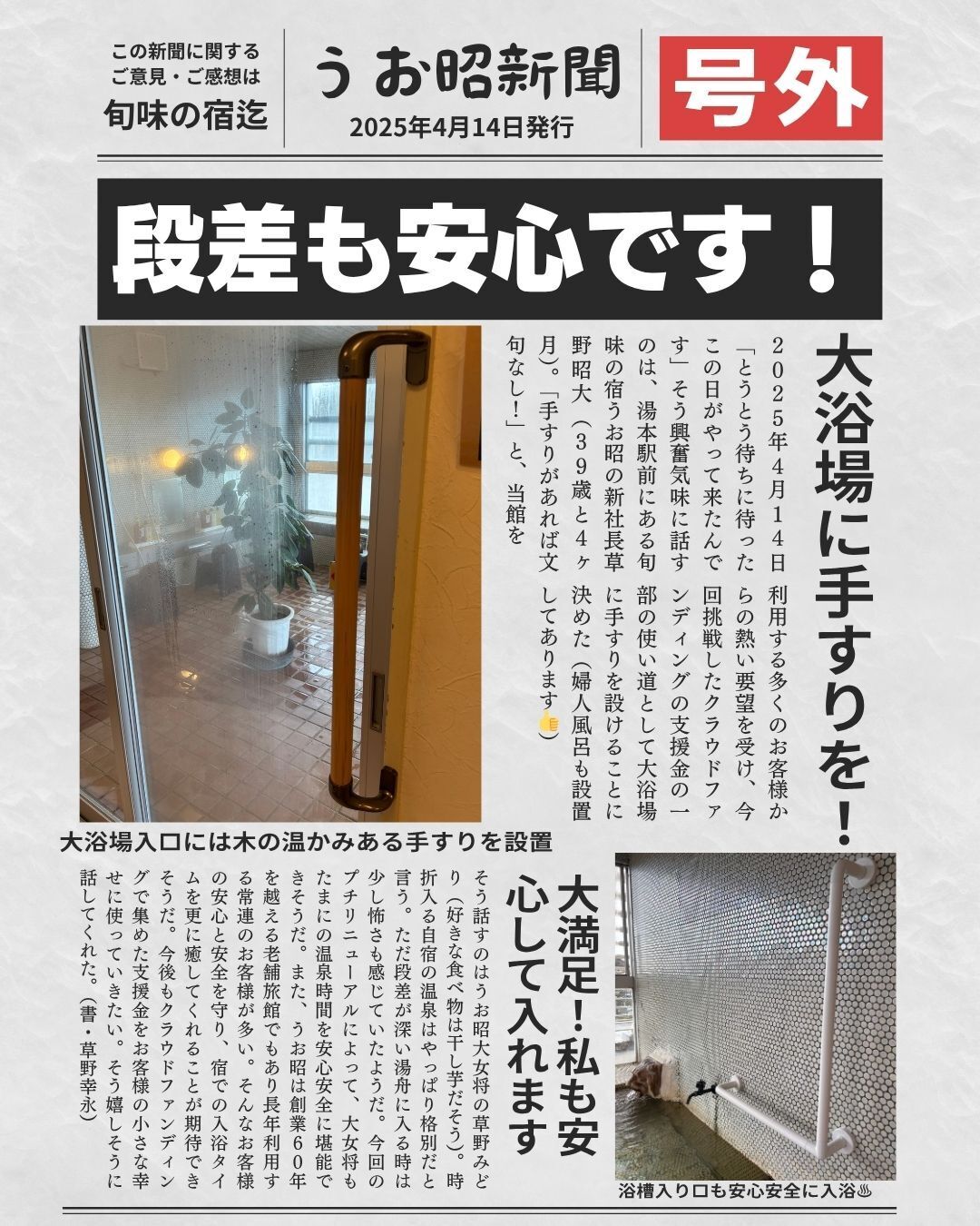 2025/05/28 11:06さてさて皆様、大変ご無沙汰をしておりました。おかげさまを持ちまして、3/31をもちましてプロジェクトを無事に達成という形で終えることができました。改めまして御礼を申し上げます。早速ではございますが、みなさまから頂戴を致しましたお気持ちの一部をご活用させていただいております。うお新聞という形でちょっぴり趣向を凝らしてご案内させていただきますので、お手隙の時にご覧いただけましたら嬉しいです。うお昭新聞vol.2も近日更新予定ですのでお楽しみに! もっと見る