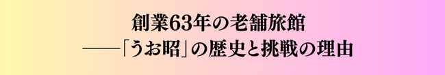 この挑戦は、「うお昭」という宿を100年先の未来に繋げるだけでなく、