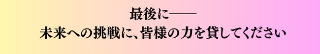 ――そのために、未来を見据えた新たな挑戦が必要だと確信しました。