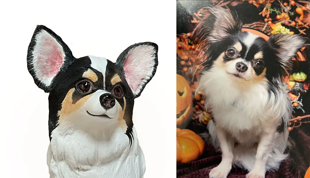 卓上に置けるスタンダードサイズのワンニャンモニュメント、またはお好みに応じて等身大サイズをお選びいただけます。あなたの愛するペットを、どこまでもリアルに、永遠に。