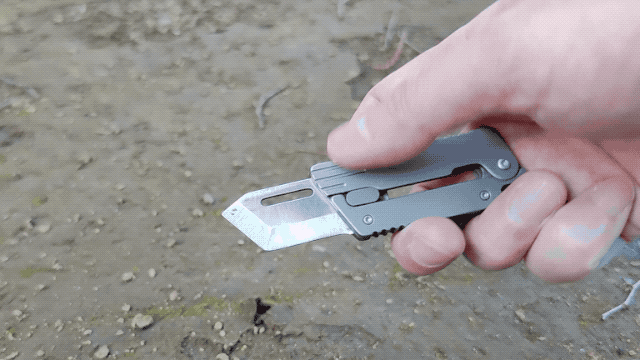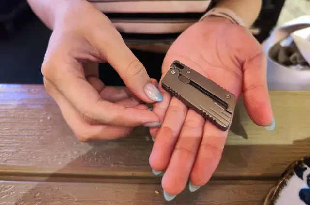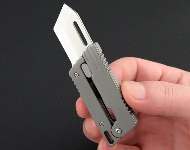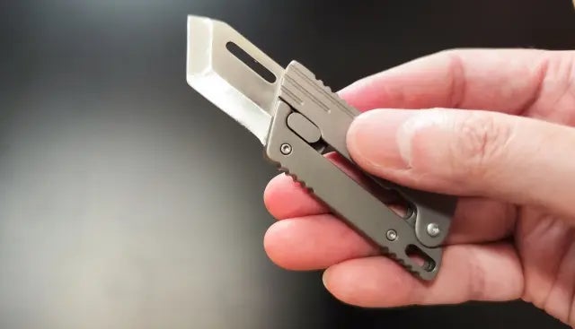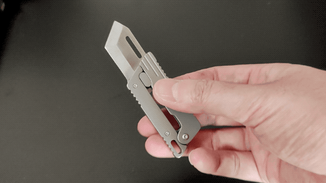 片手で開閉できる仕組みがあり、軽く振るだけで刃を出し入れできるため、その操作感が非常に楽しく、ストレス解消になります。