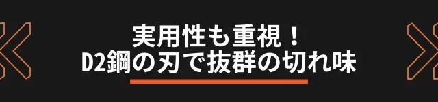 実用性も重視し、刃は非常に切れ味の良いD2鋼という素材を使用しています。D2鋼は硬度が高く、耐久性があるため、アウトドアでバトニングなどのハードな使い方にも最適です。