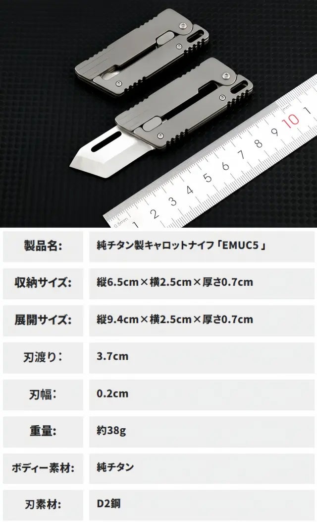 「EMUC5」は純チタン製ミニナイフです。