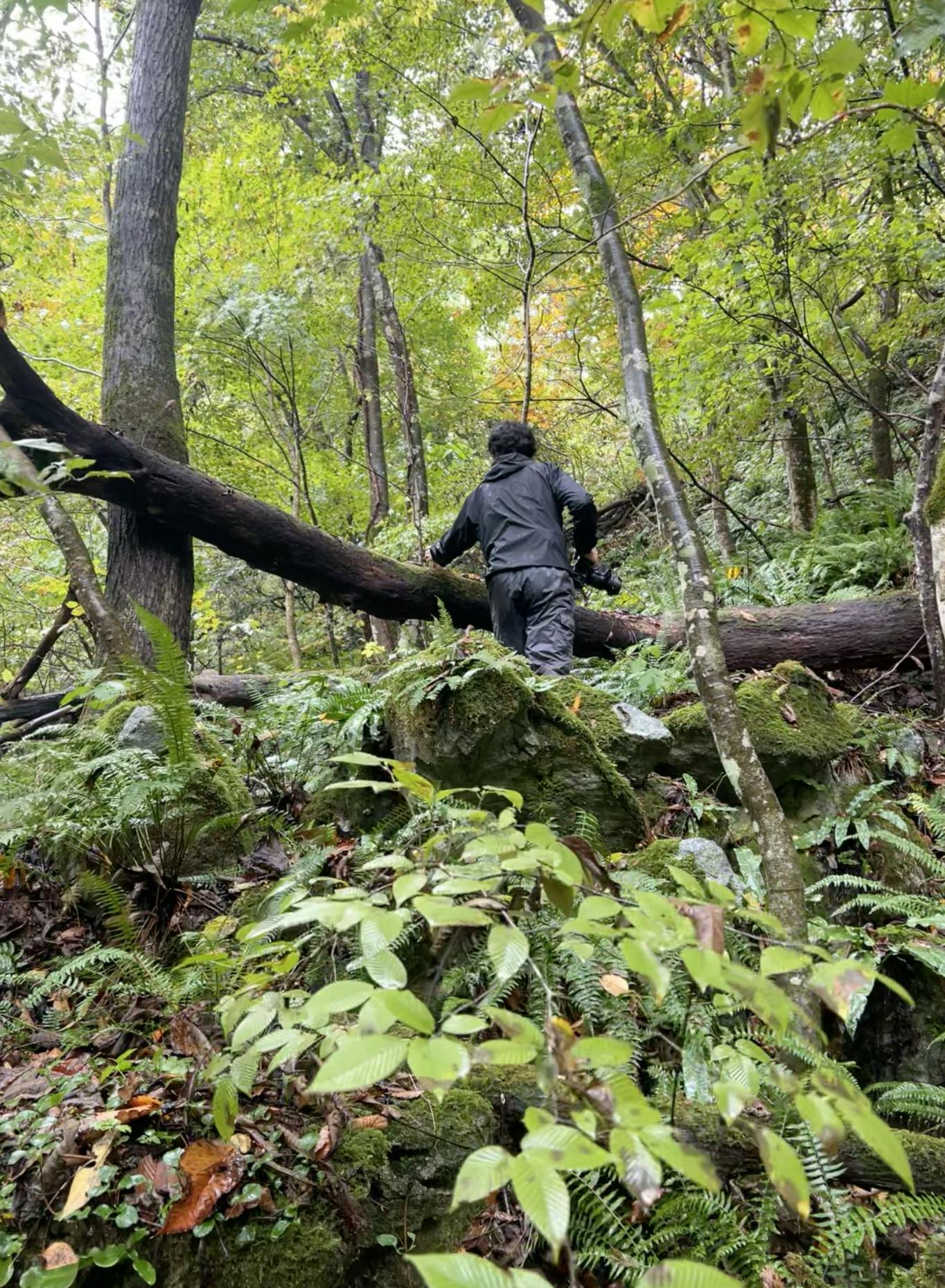 なんと当日は雨だったのですが、雨天決行!時期柄、熊がでるという話もきいていたので熊よけのベルと爆竹をもって撮影に挑みました。