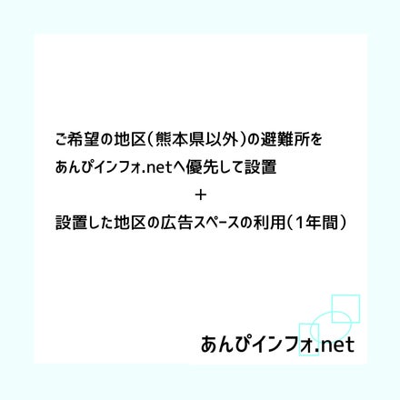 「ご希望の地区(熊本県以外)の避難所をあんぴインフォ.netへ優先して設置 + 設置した避難所の広告スペースの利用」