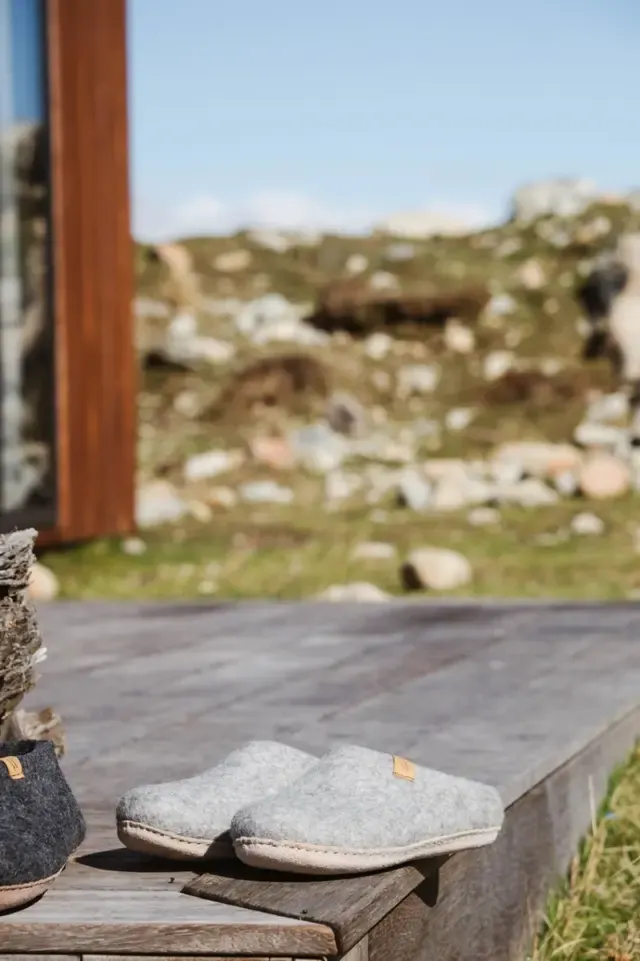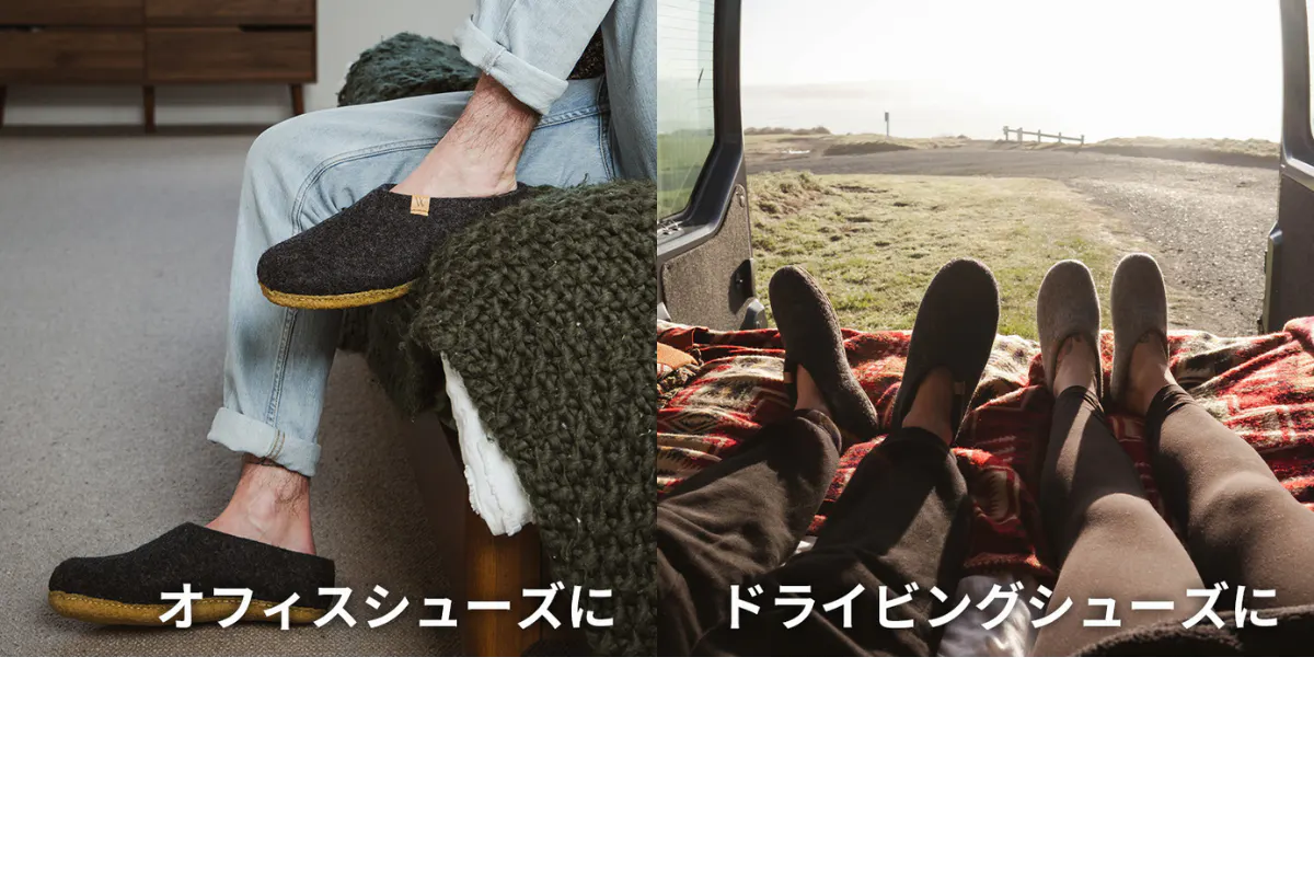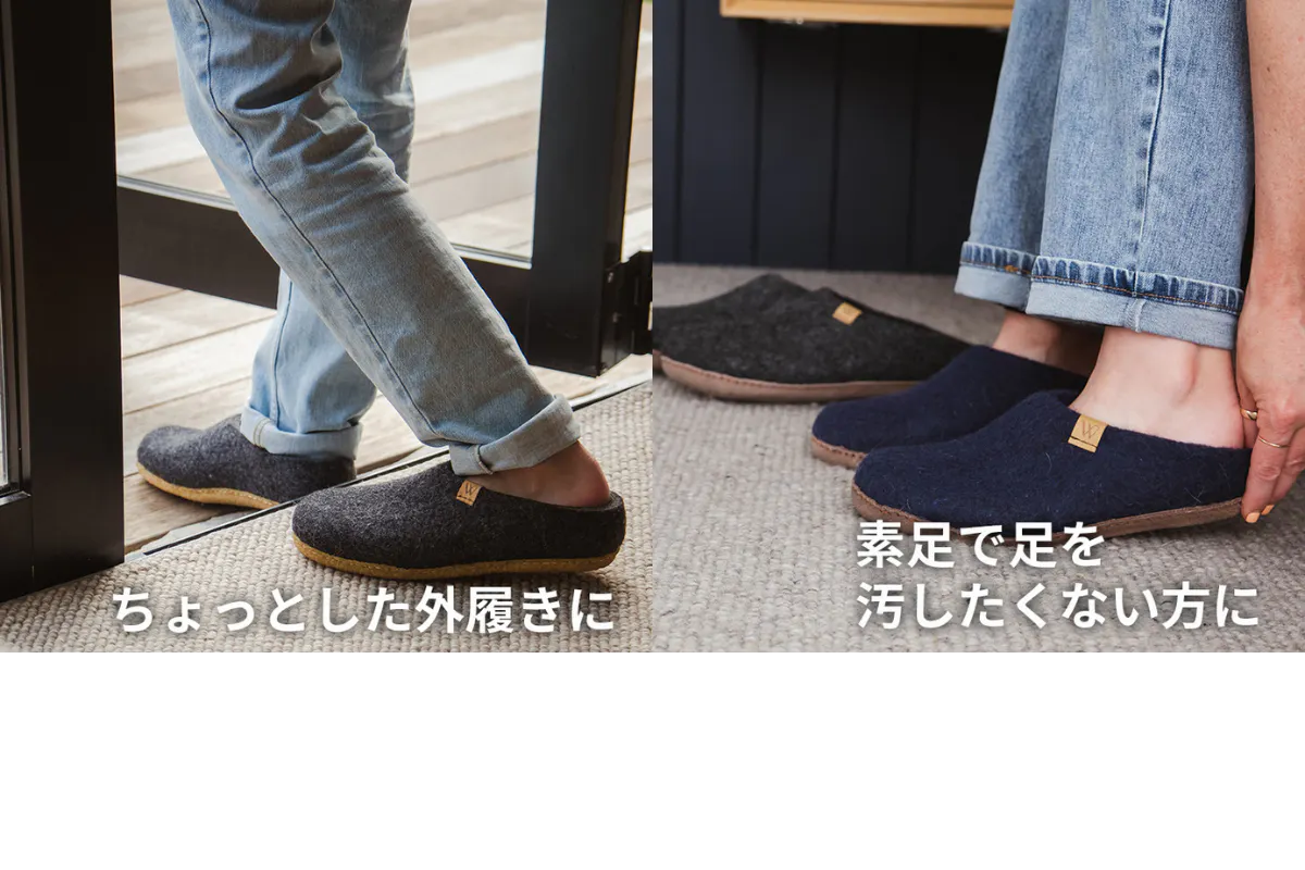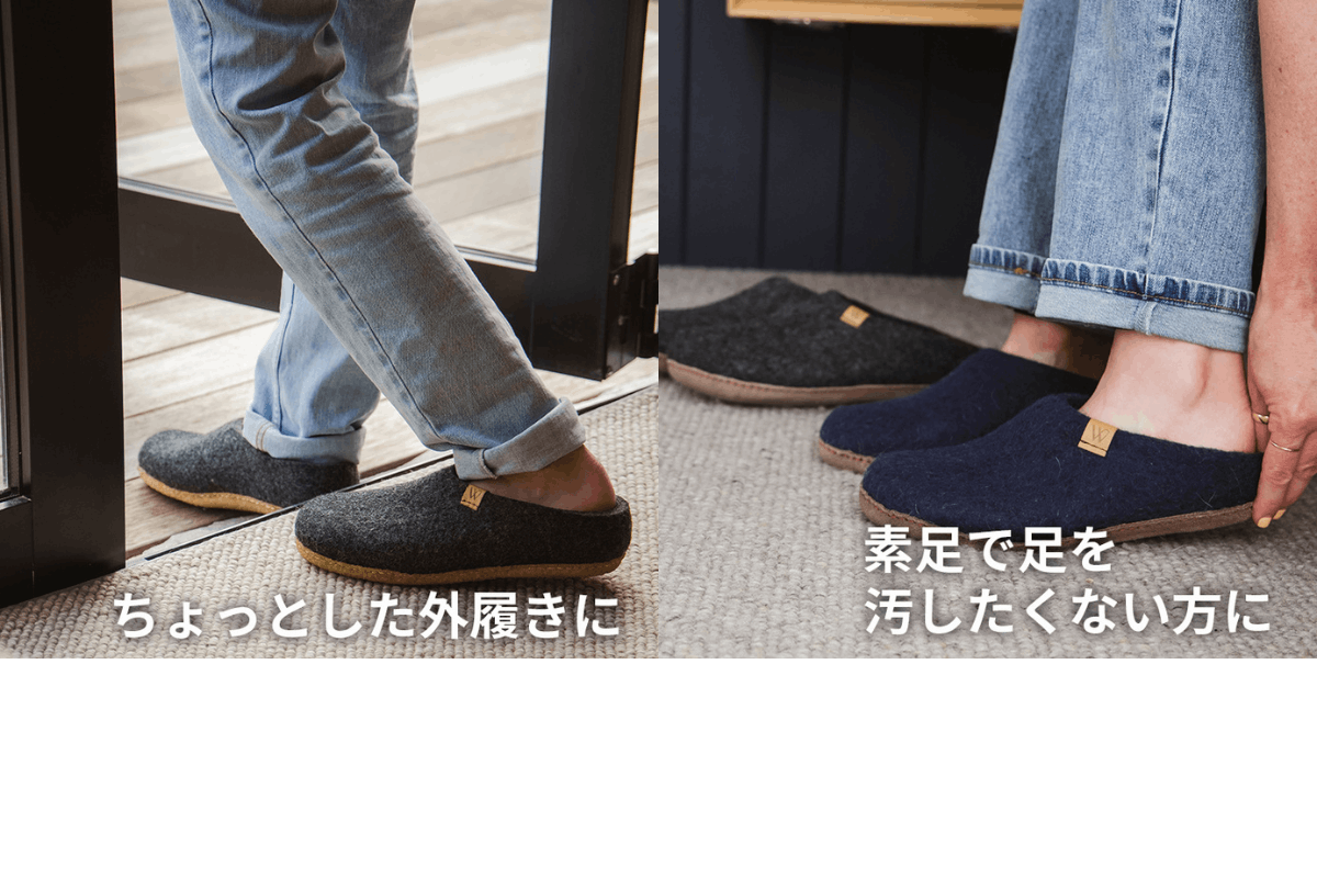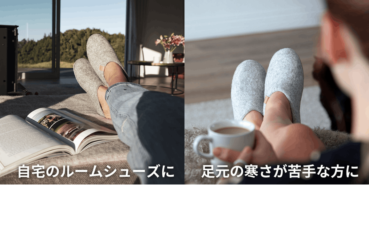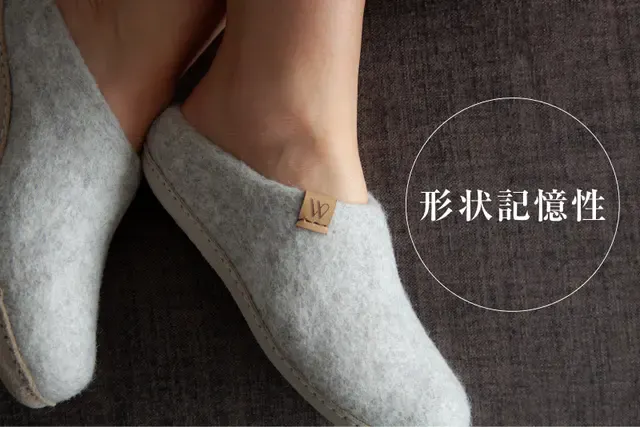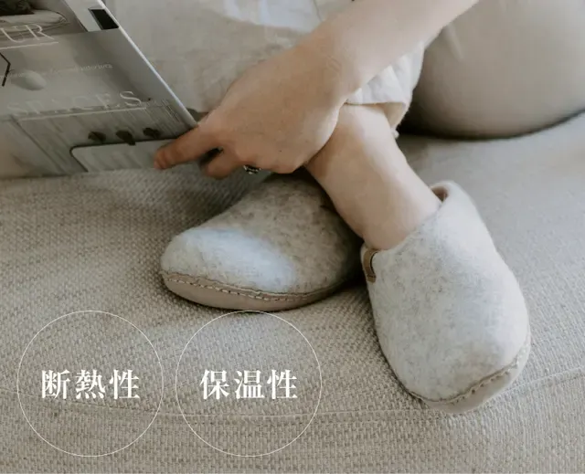 - ①ニュージーランド産羊毛100%のフェルト生地で究極の履き心地を実現したルームシューズ