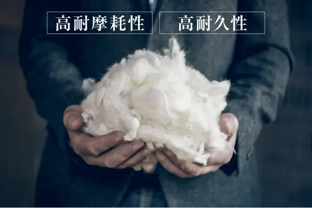人の毛と同じたんぱく質のケラチンでできている天然の羊毛は、他の繊維に比べ耐摩耗性や耐久性が高いのも特徴です。