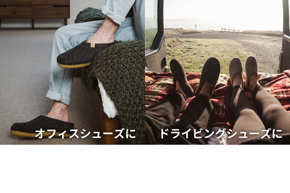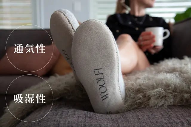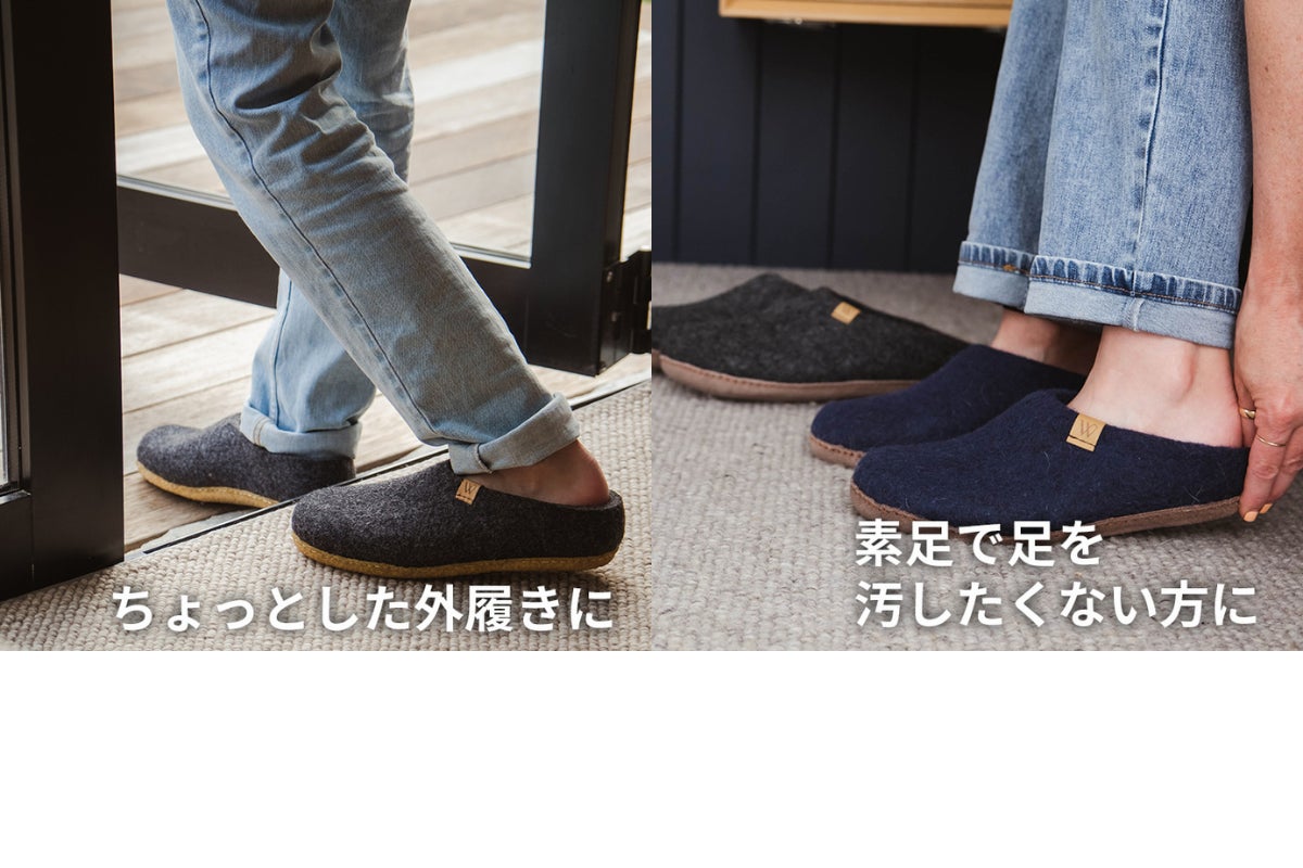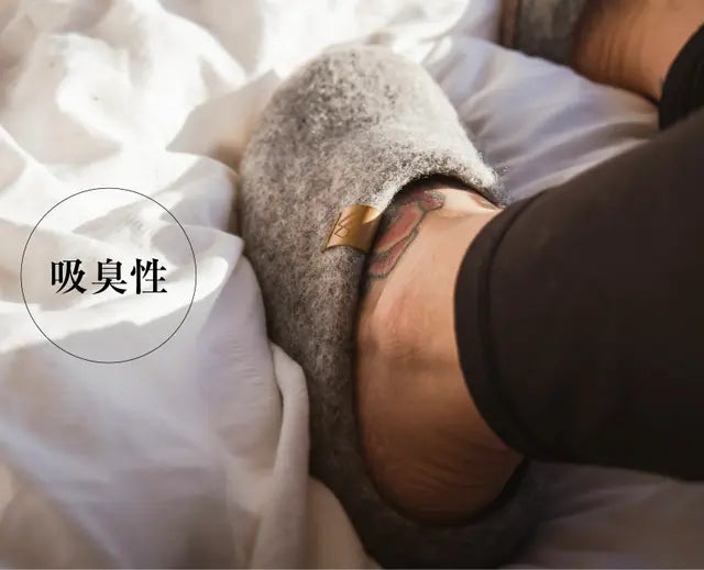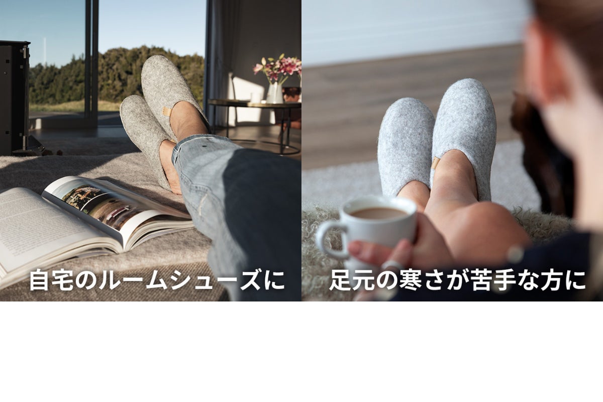 - ①ニュージーランド産羊毛100%のフェルト生地で究極の履き心地を実現したルームシューズ