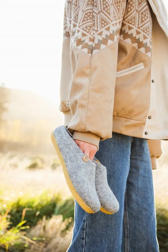 ルームシューズまたは軽い外履きとしてアッパー部分のフェルトを厚く靴底をラバーソールにした【Valais Slip-on】の2タイプをご用意しました。