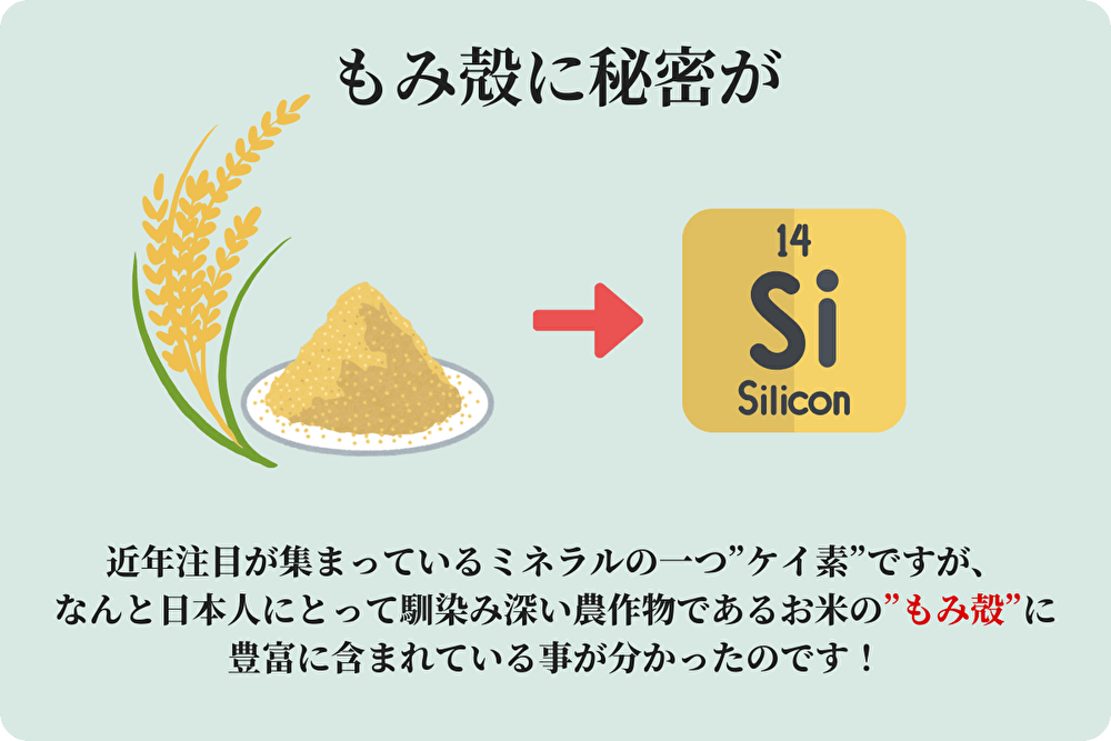 なんと日本人にとって馴染み深い農作物であるお米の"もみ殻"にとても豊富に含まれている事が分かったのです!