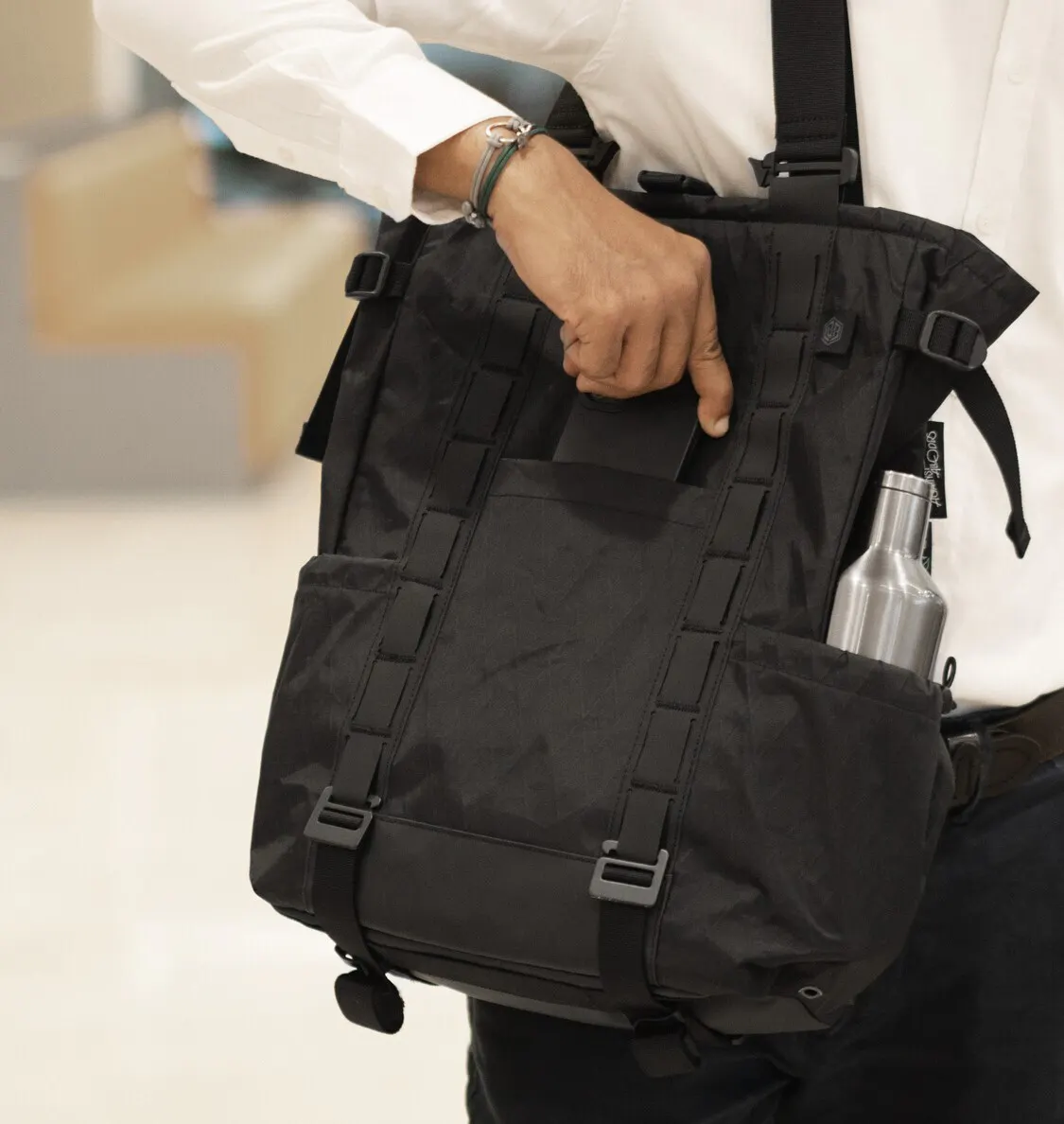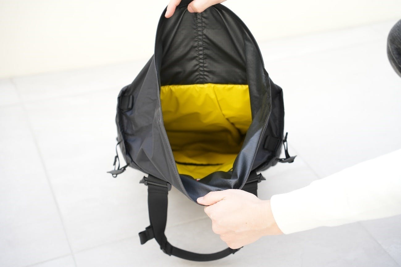 【Transition Tote】はメインコンパートメントにロールトップを採用しました。