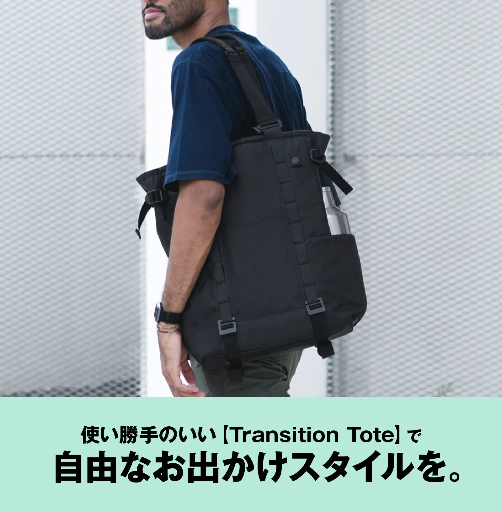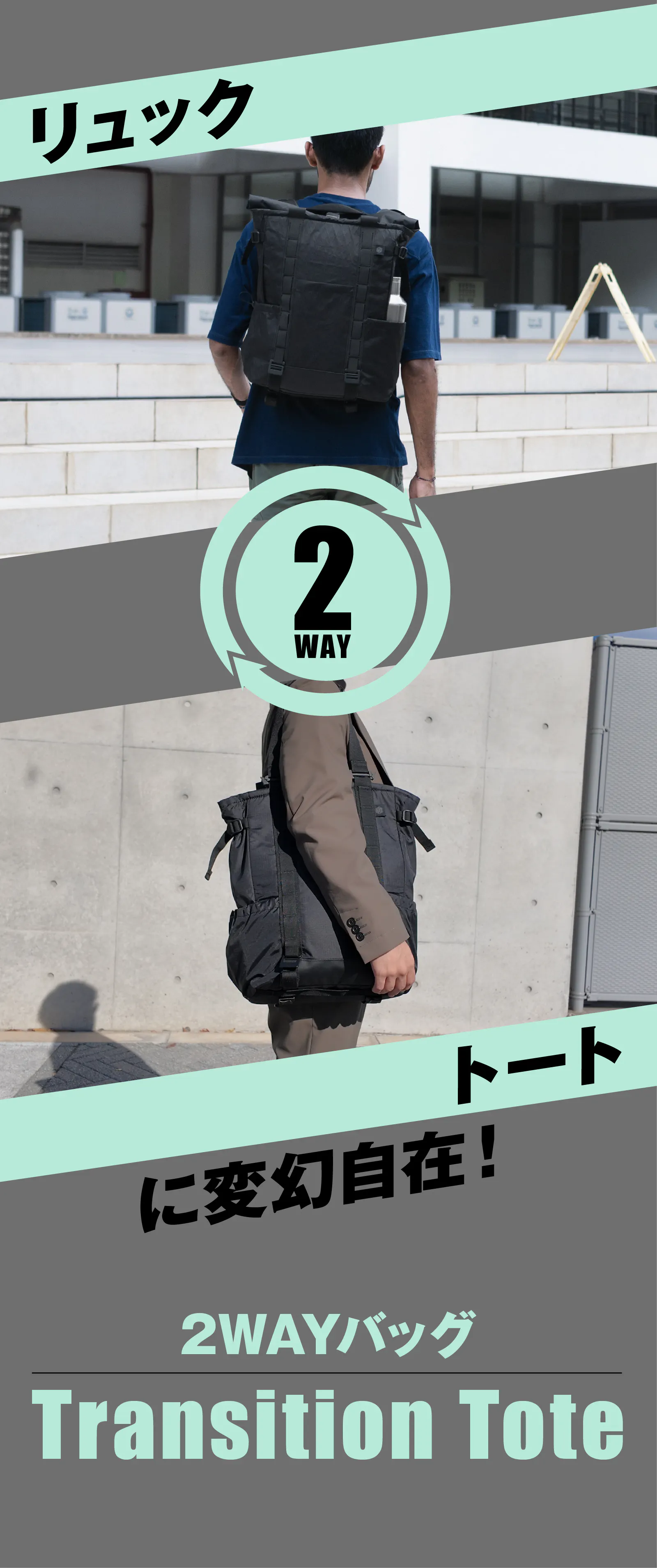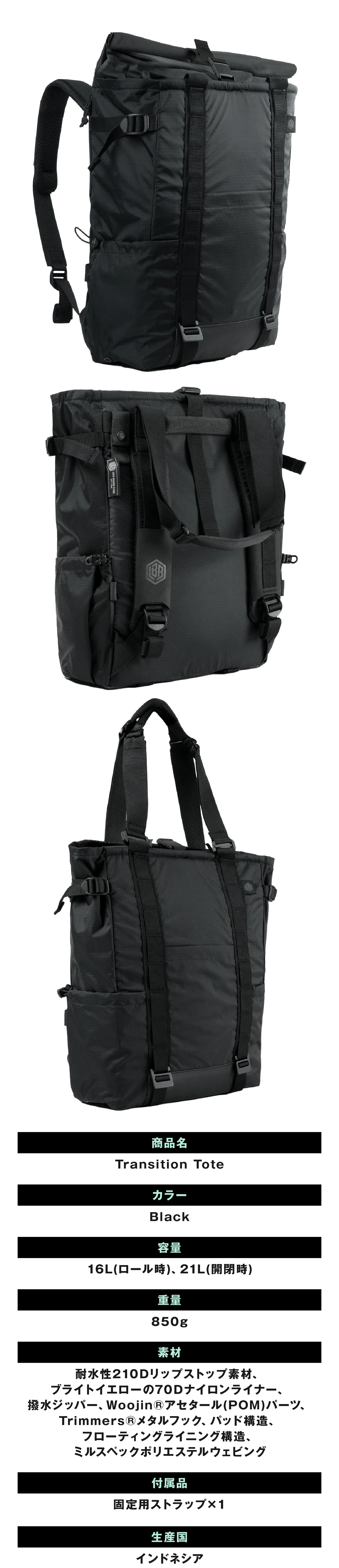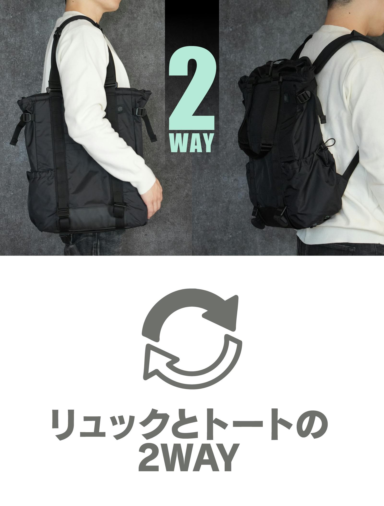 【Transition Tote】はリュックとトートバッグを瞬時に切替できる収納力抜群の2WAYバッグです。