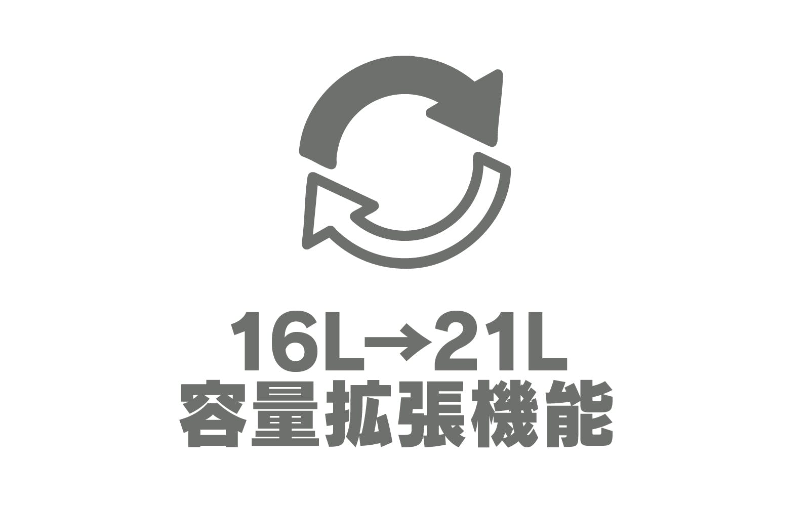 荷物の容量に応じて16L→21Lにサイズ拡張も可能。