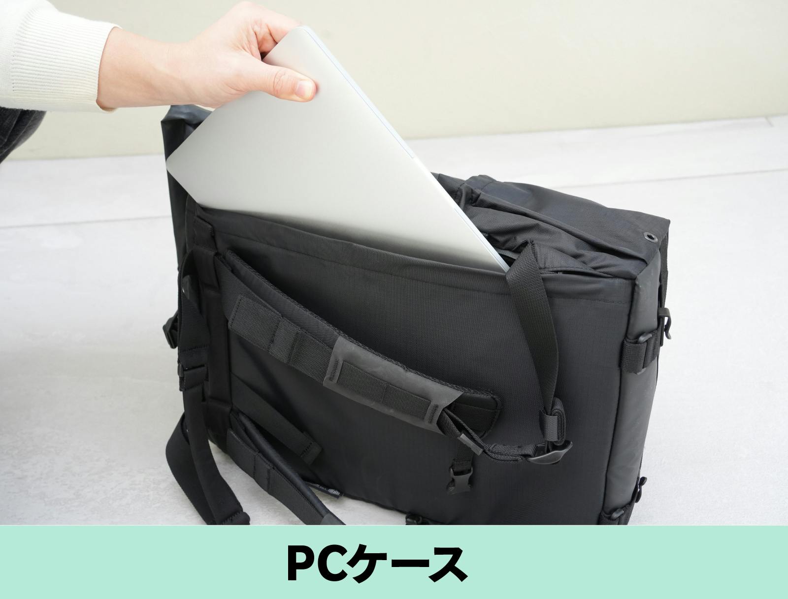 バッグのサイドにはPCケースを配置。