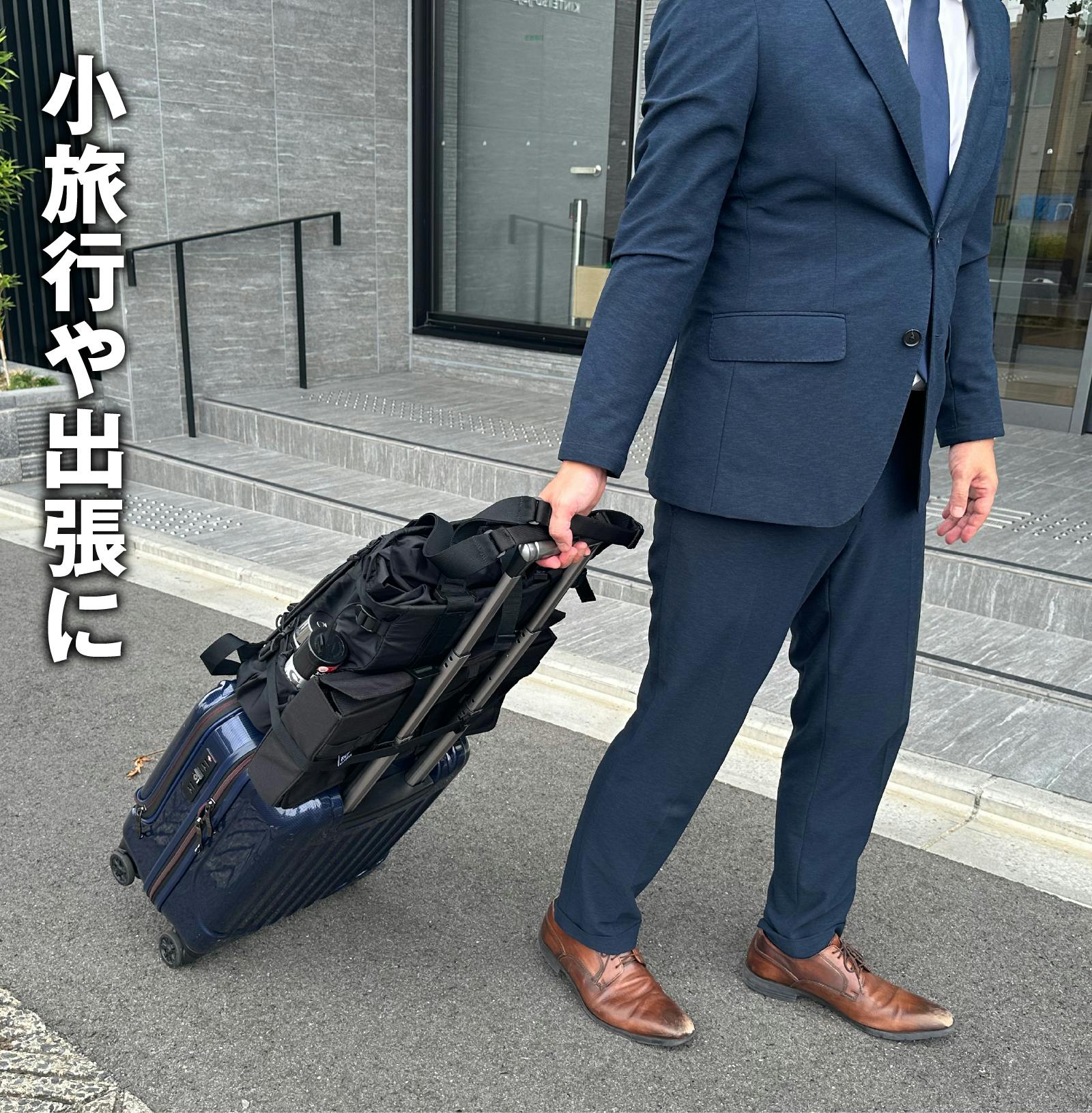 またこのストラップを利用すると、キャリーオンバッグとしてもご利用頂けます。