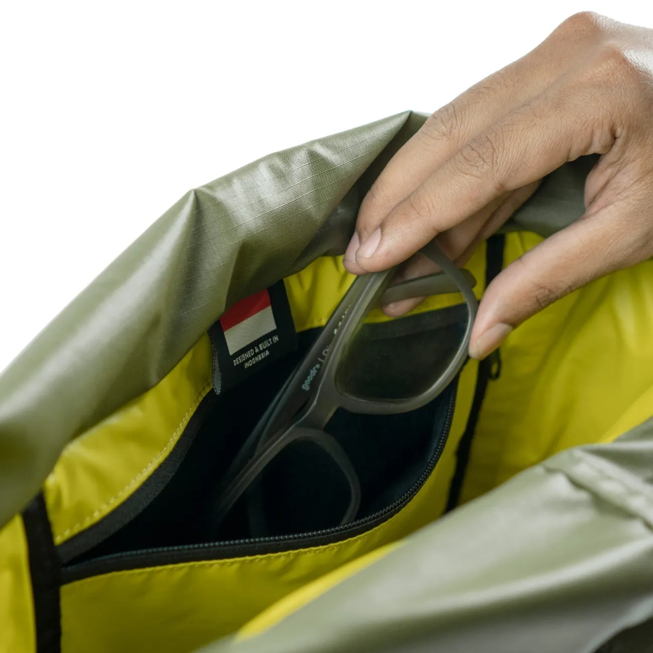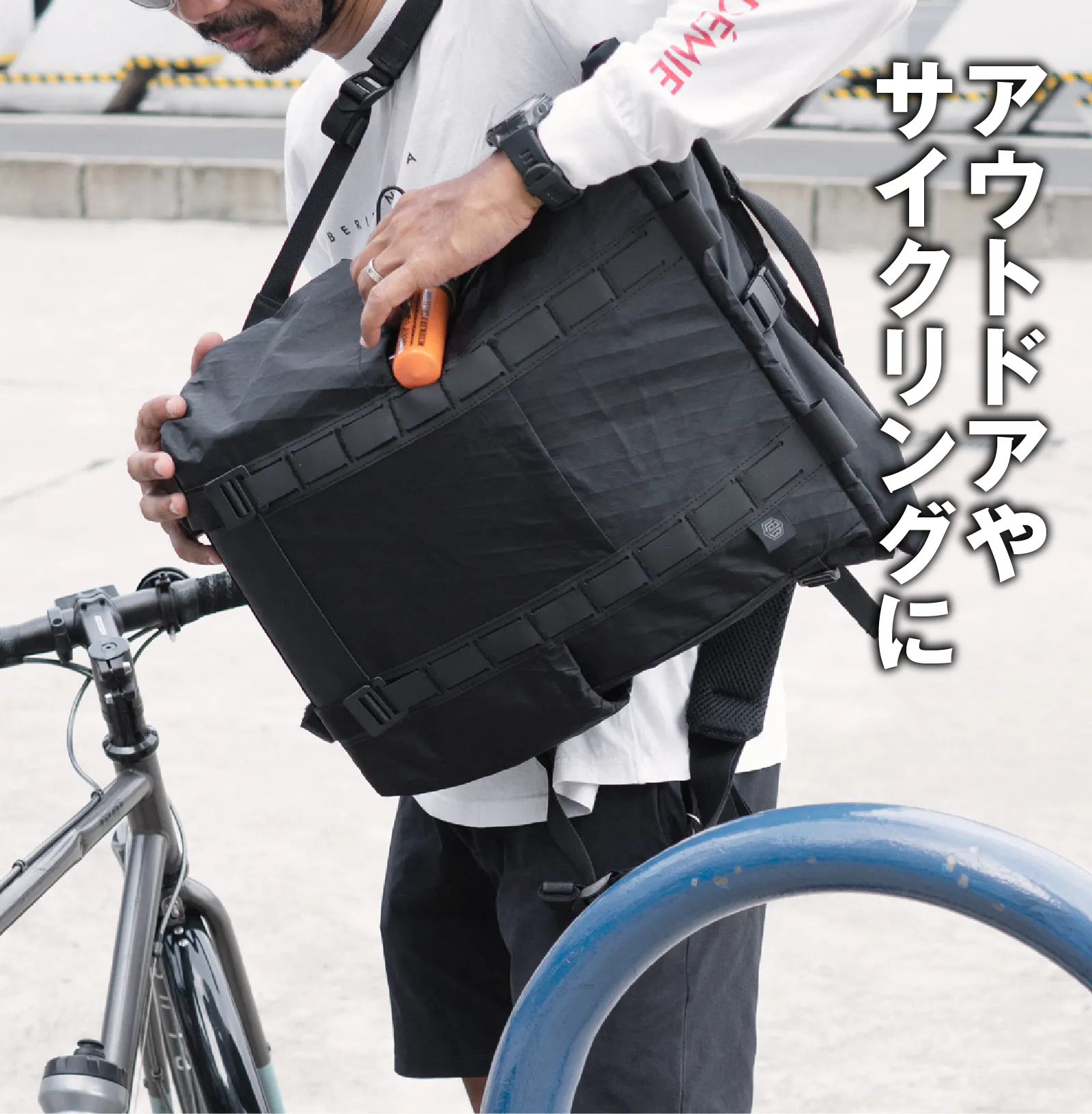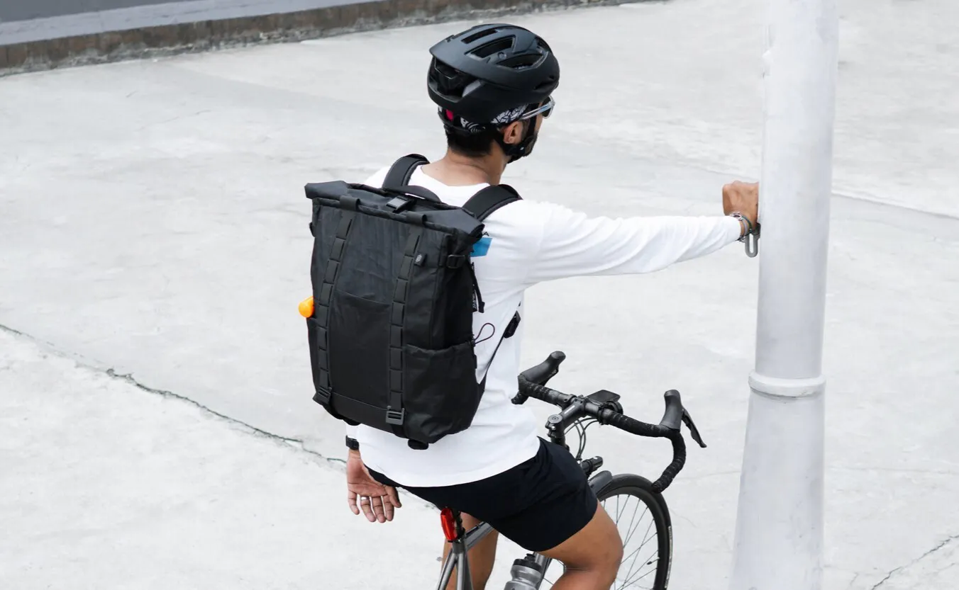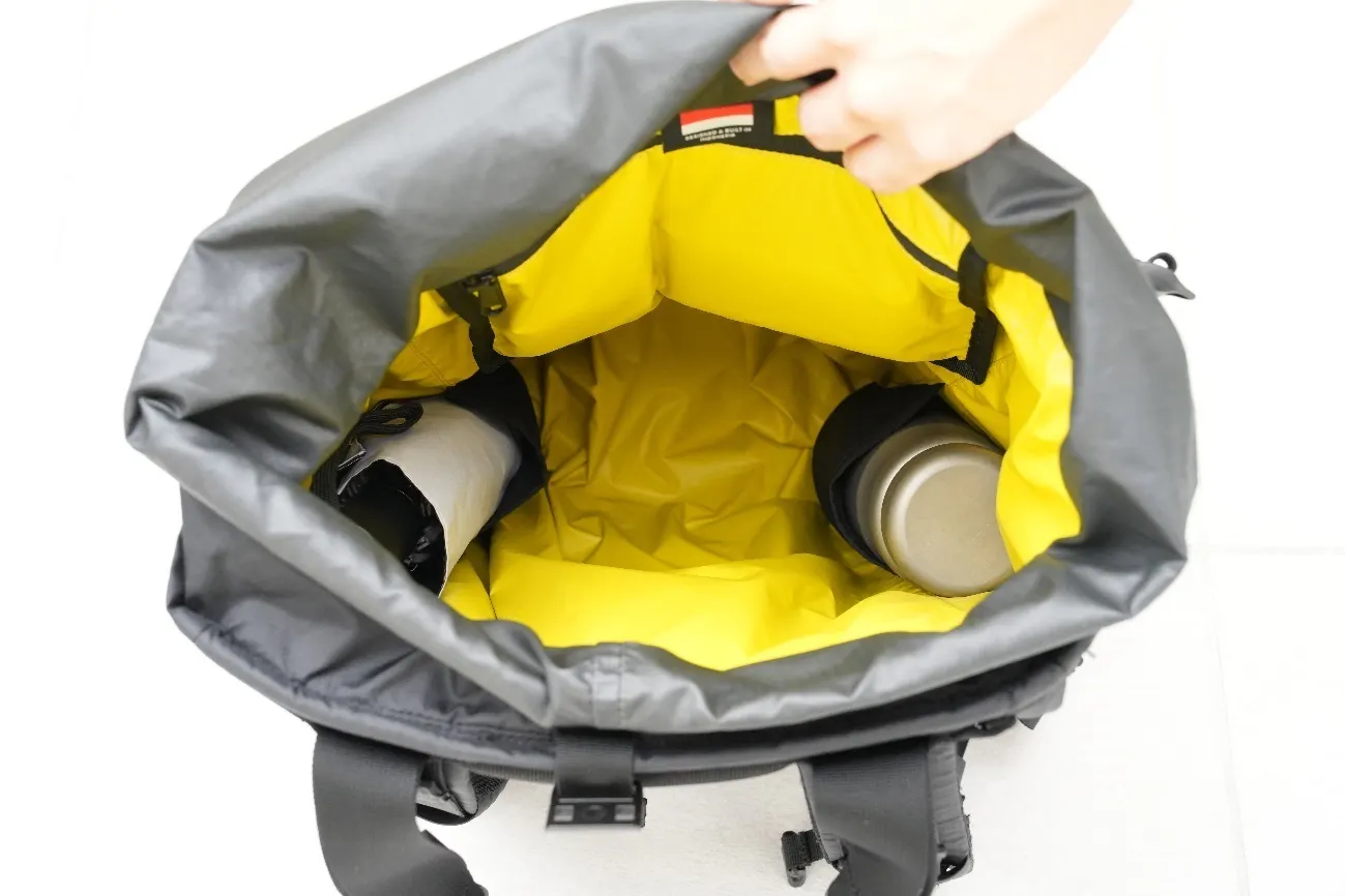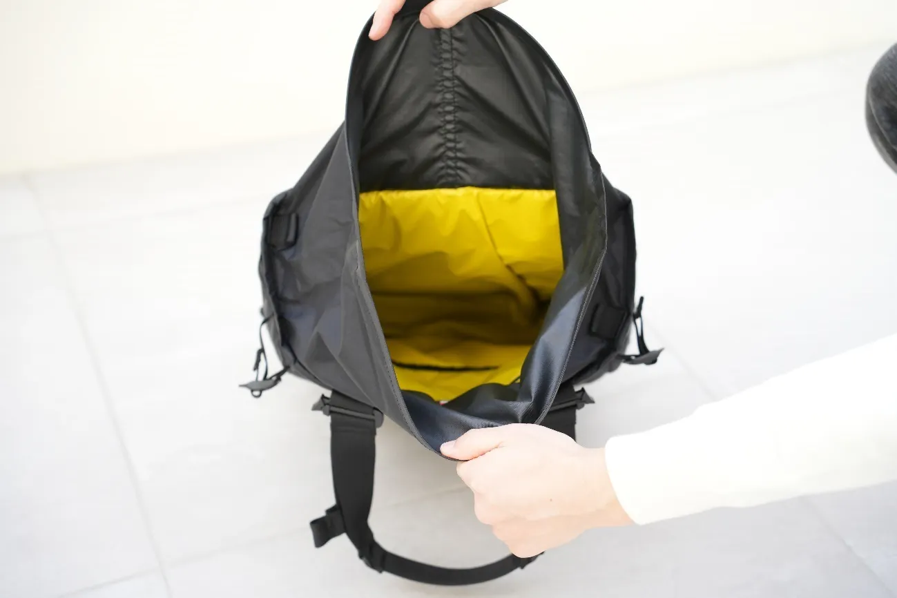 荷物が出し入れしやすいロールトップと耐摩耗性に優れた210Dナイロンリップストップを採用し、突然の雨でもあなたの荷物をしっかりガード。