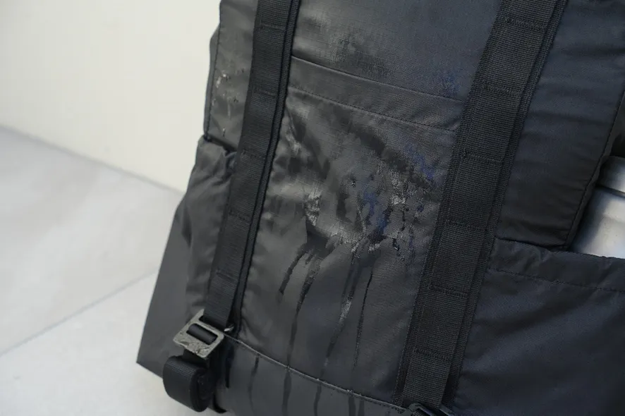 【Transition Tote】はバッグの生地に軽量で耐摩耗性に優れ、しかも防水機能を持つ210Dナイロンリップストップを採用しています。