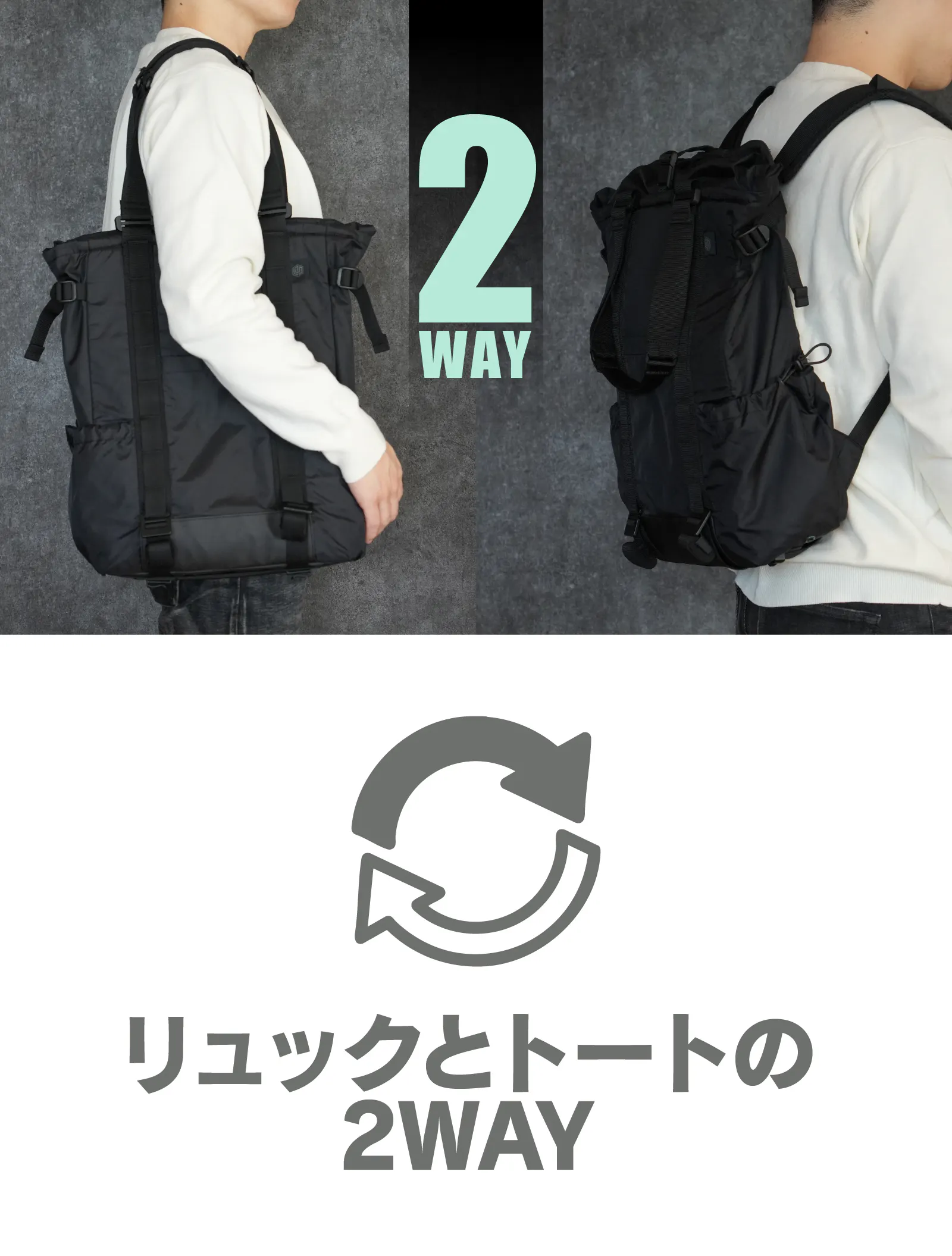 【Transition Tote】はリュックとトートバッグを瞬時に使い分けできる2WAYバッグです。