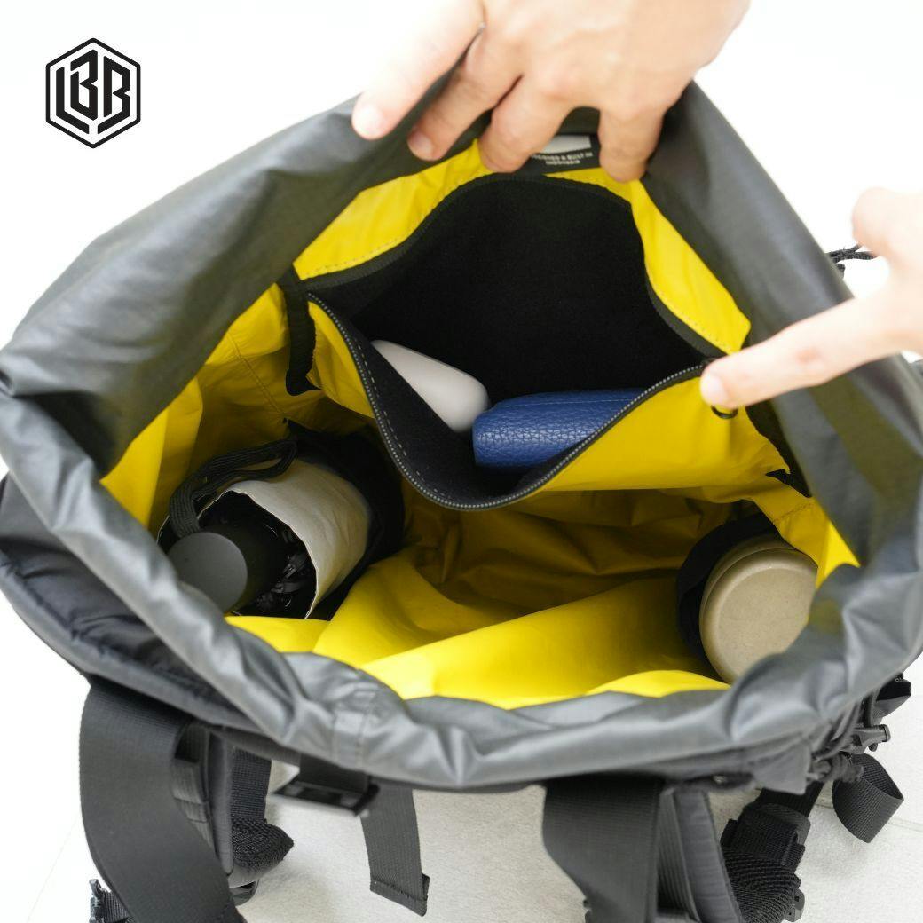 ペットボトルや折り畳み傘を立てて収納でき、バッグの中が濡れる心配もなし。