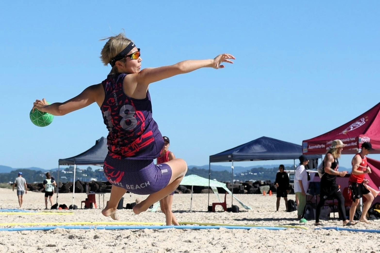 1992年にイタリアでハンドボールから派生した競技の一つです。ハンドボールとは違い、10分間の2セット制、常に4対3の数的優位で戦うスポーツです。そして1番の違いは2得点がとれるアクロバティックプレーがあるという、ビーチハンドボールならではの魅力があります。