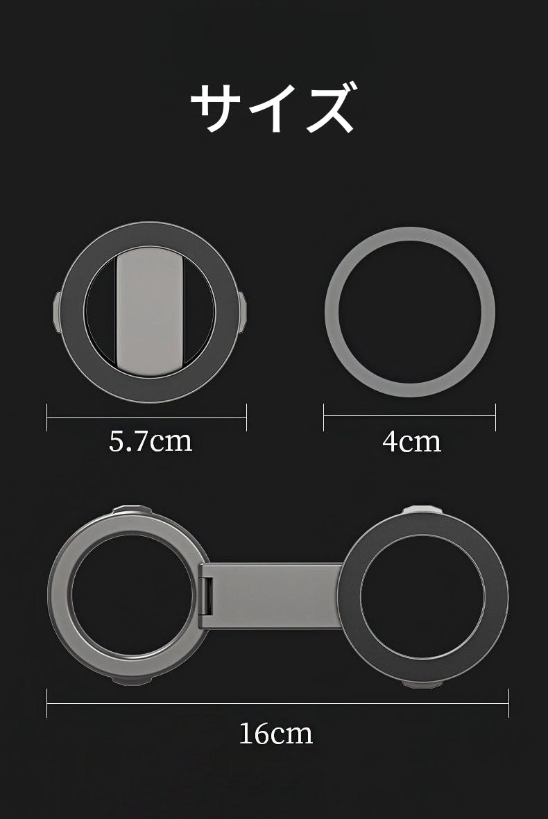 付属のメタルリングとプレート(各2個)をお好きな場所に貼り付けることで、磁力が働かない場所でもスタンドをしっかり吸着可能!
