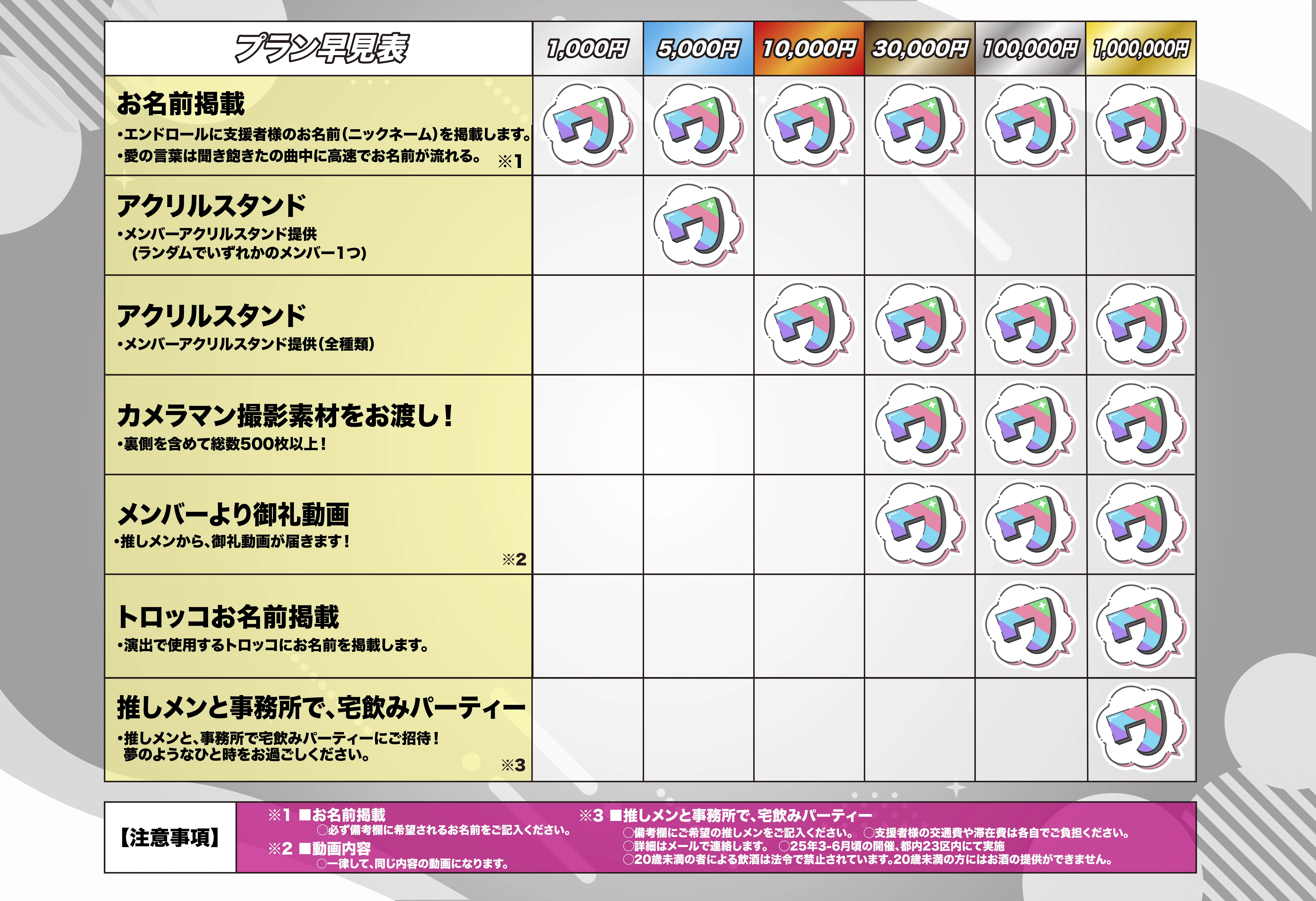 ファンのみなさんからご支援いただいた資金は、「演出費」のみでの使用とさせていただきます。