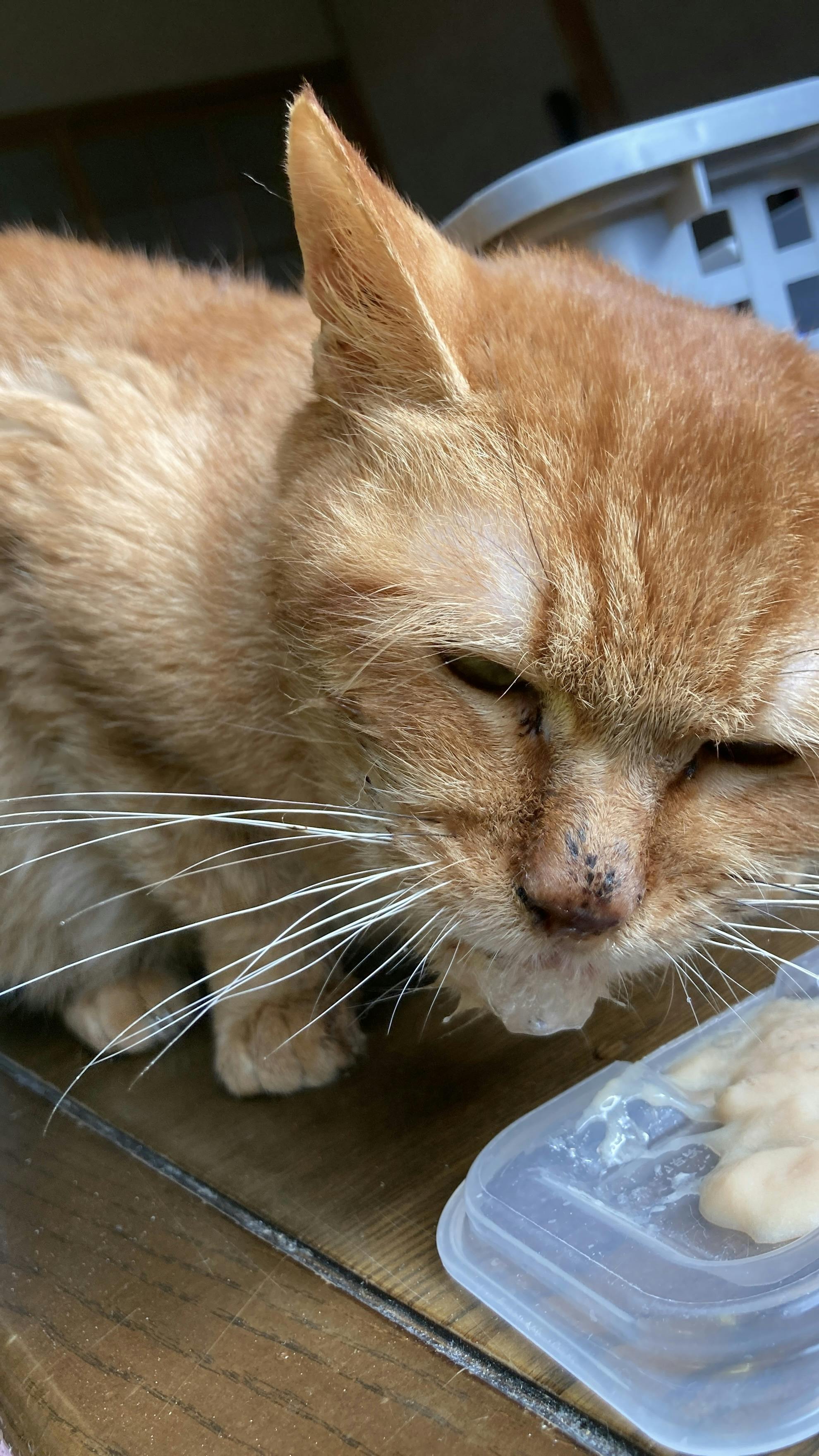 ごはんもきっと痛くて食べれなかったと思うけど、この子は生きる為に頑張ってるよと( •︠ˍ•︡ )