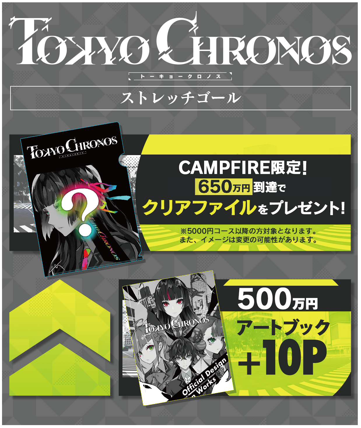 だからこそ、支援者の皆さまには、開発過程を共有しつつ、時にアイディアを募ったり、国内スペシャルイベント企画したりするなど様々な形で作品と関わっていただき、ともにこの作品を育て上げ、「東京クロノス」を全世界に羽ばたかせる、いわゆる「社外クリエイター」「社外宣伝P(プロデューサー)」としての役割を担って頂きたい。