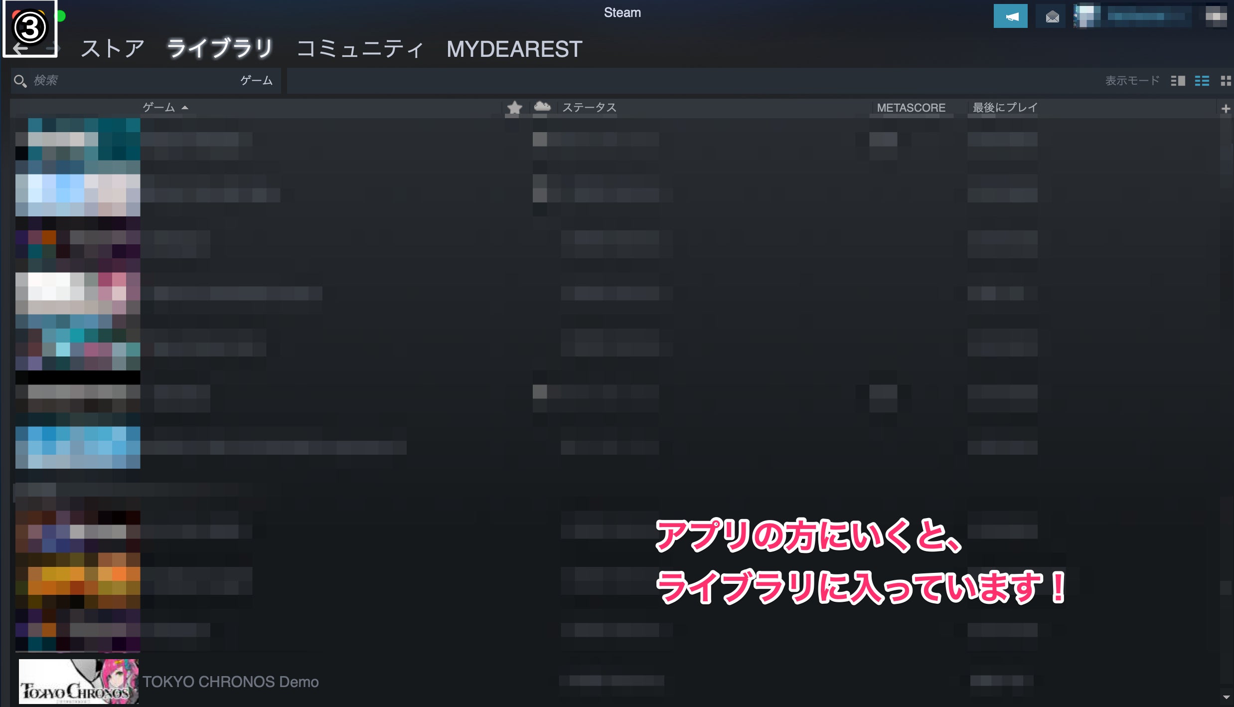 ③アプリのSteamへ行き、ライブラリを確認する → GET!!!
