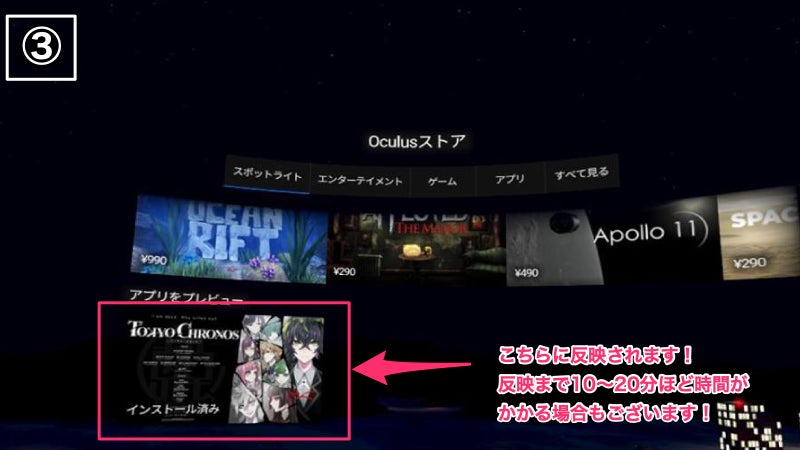 ②認証が完了次第、自動でOculusにアプリ反映 (少し時間かかります)