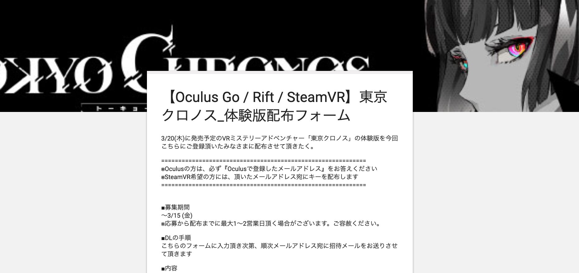 Oculus版, Steam版ともに体験版をストアで配信できるよう、現在絶賛準備もしております!