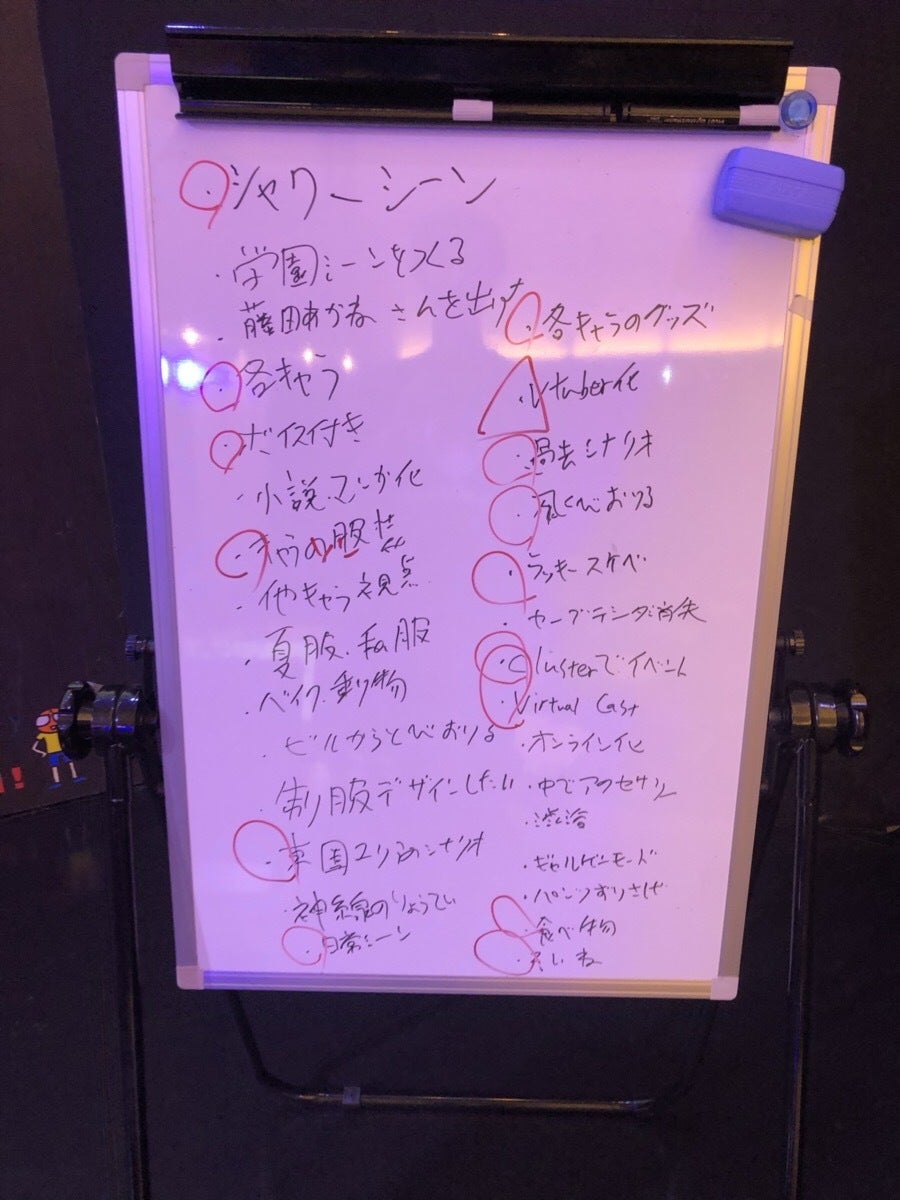「制作共犯者MTG vol.0」で決まった制作アップデート事項に関して、今回改めて発表いたします! イベントレポはこちら→https://camp-fire.jp/projects/81176/activities/60932#main 入場の際にお配りしたパンフレットに挟まったメモカードに、会場のみなさま一人一人が要望や意見を書いていただき、それをホワイトボードに書いていきました。 本当に様々なものが出たのですが、時間の許す限りに開票。 その場で制作サイドとして対応することを総合プロデューサーの岸上が決めていきました。 このスピード感とインタラクティブ性は、とても新しいです! 時間の都合上、読めなかったものもあの後全てスタッフが確認し、 その中で今後対応するものを決定致しました。 ・ ・ ・ 【必ず実行します_リスト】 ・シャワーシーンが欲しい → 対応します! ・各キャラシナリオ(東国ユリアのサブシナリオ含む) → 対応します! ・日常シーンみたい → 対応します! ・過去シナリオみたい → 対応します! ・落下シーンほしい → 対応します! ・食べ物シーン → 対応します! ・添い寝シーン → 仕様上厳密な添い寝はとても難しいのですが、近しいシチュエーションを設けられるよう頑張ります! 【時期検討しつつ、必ず実行します_リスト】 ・キャラソン→ 頑張ります!(※時期に関しては相談中) ・各キャラグッズ→ 作ります!(※時期に関しては相談中) ・clusterでイベント→ やります!(※時期に関しては相談中) ・バーチャルキャスト→ やります!(※時期に関しては相談中) 【イベント中読めなかったもので、実行を考えていきます_リスト】 ・漫画(キャラの関係性知りたい) → こちら媒体等含め議論しつつ、実行に向け進めます! ・スタッフと一緒に交流 → どこかで設けさせて頂きます! 上記に関しては、対応を実行してまいります! 進捗あり次第、ご報告していければと思っております! 沢山のアイディアをくださった制作共犯者の皆さま、ありがとうございます! 引き続きよろしくお願いします!