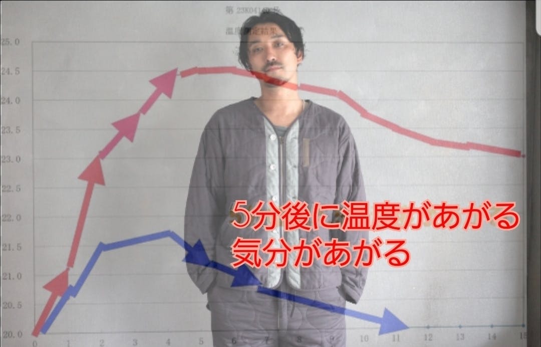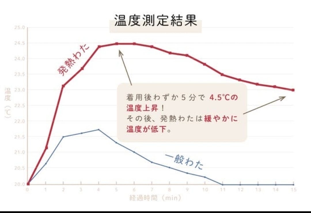 発熱綿使用で分後に4.5℃温度が上昇!