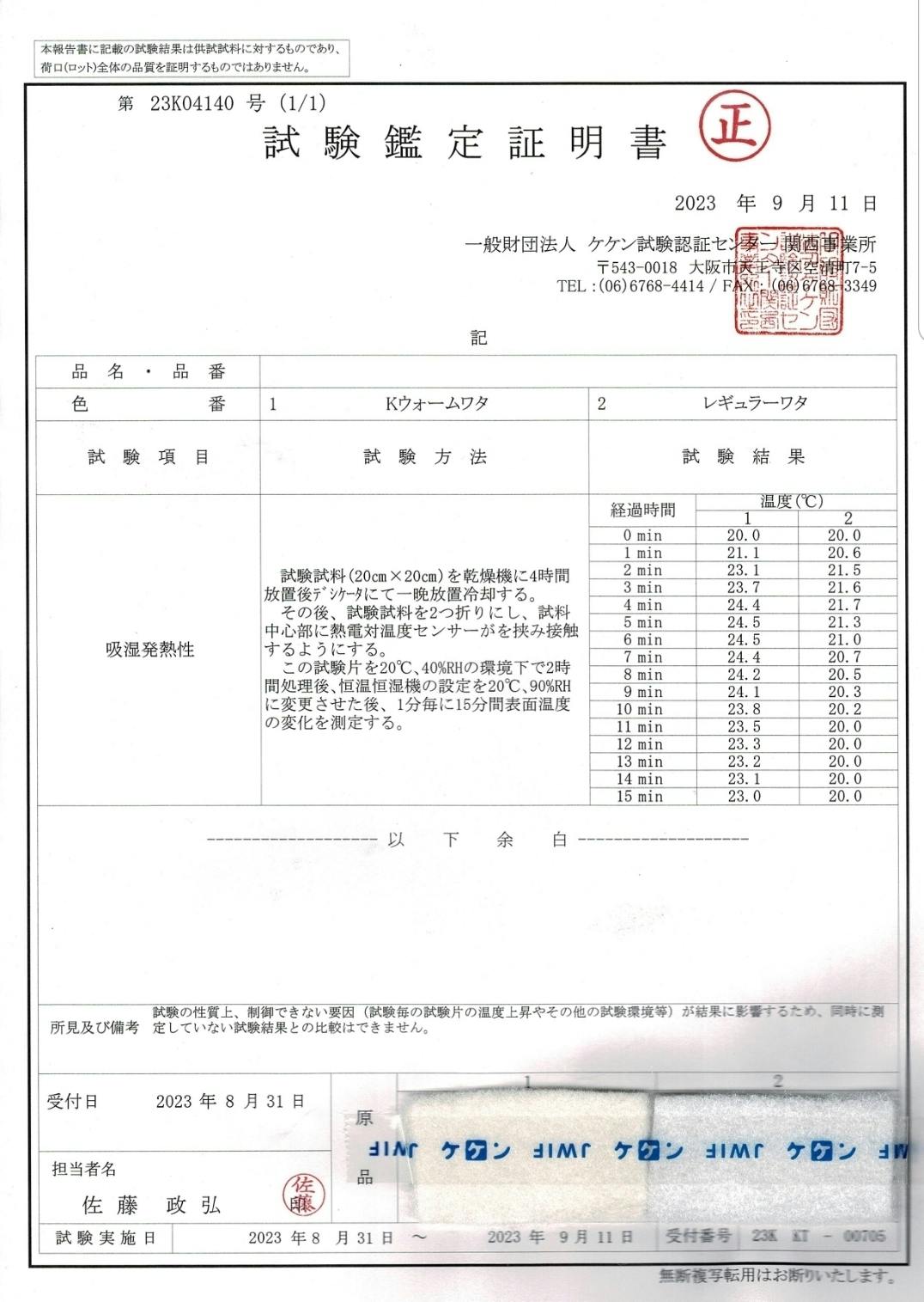 発熱綿のロジカルな検証結果