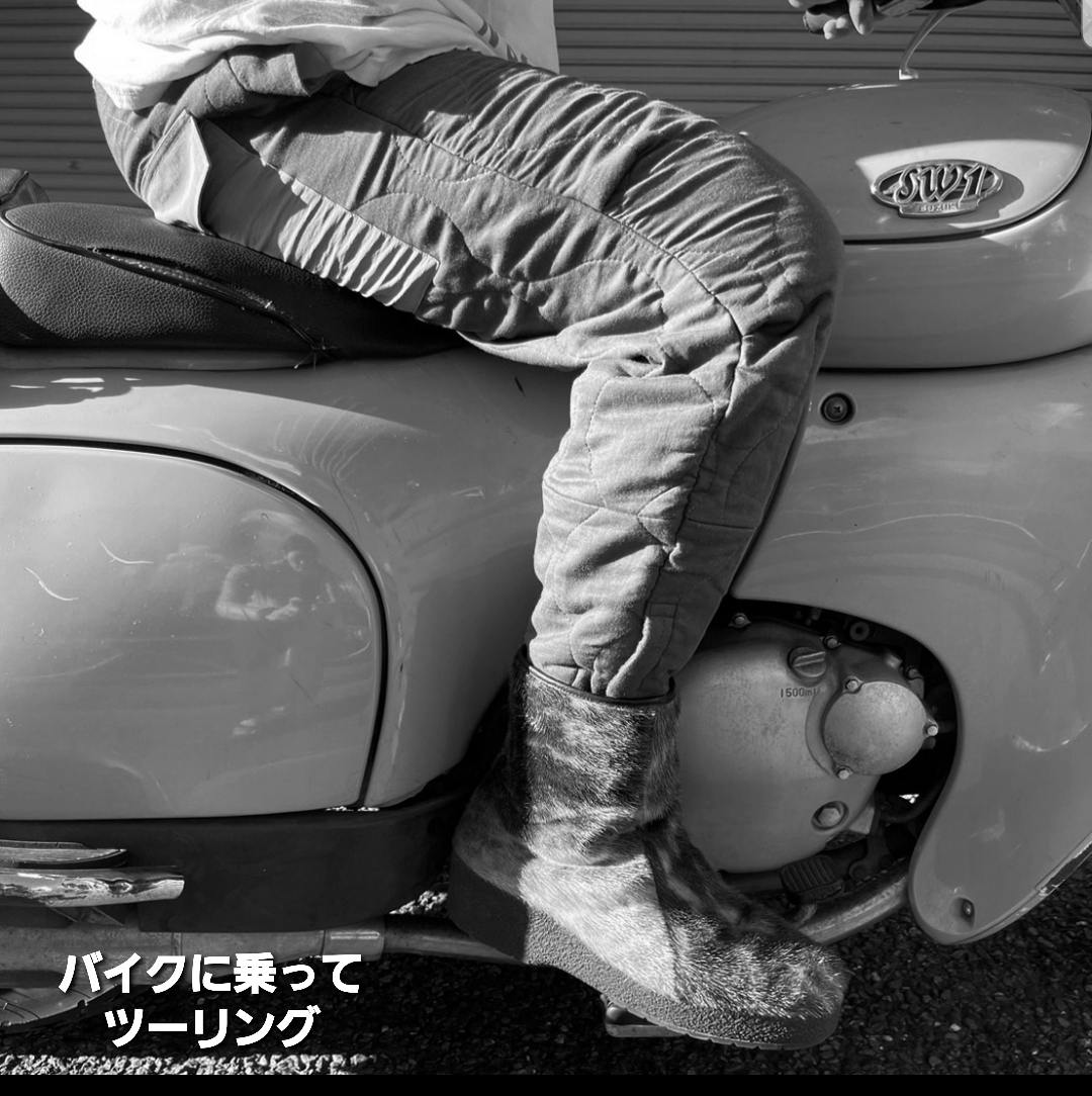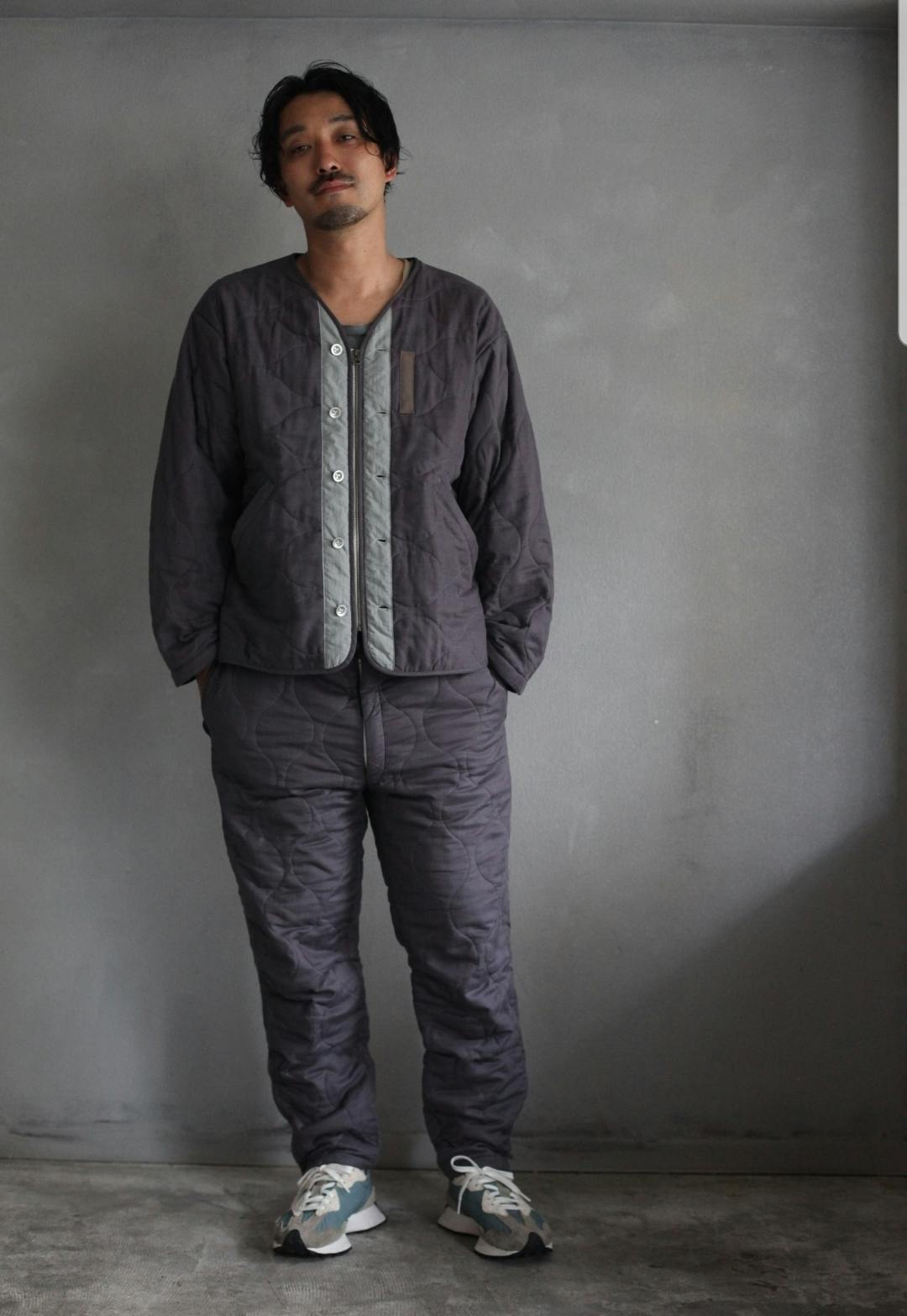 ややテーパードのパンツはキルティングを綺麗に魅せる