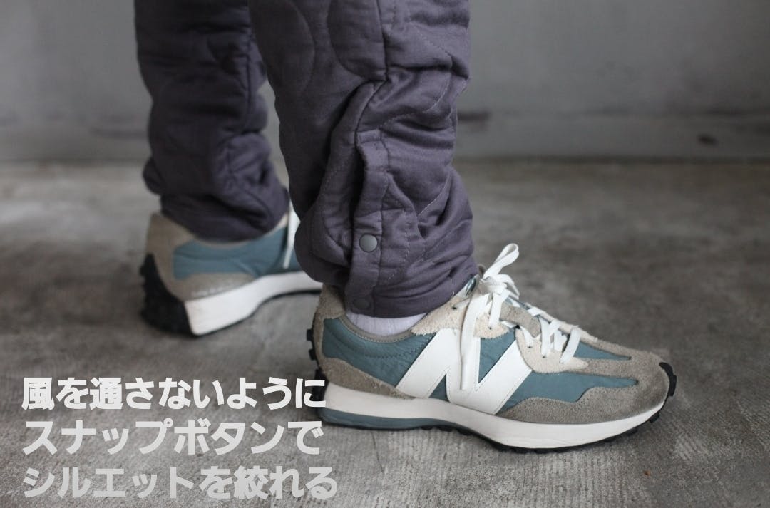 パンツの裾は冷たい空気を防ぐようにボタンで絞れる仕様